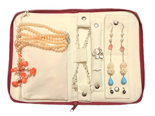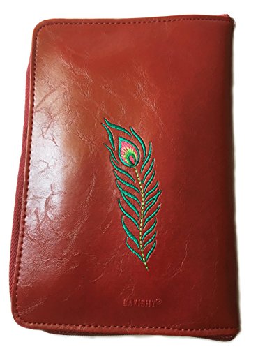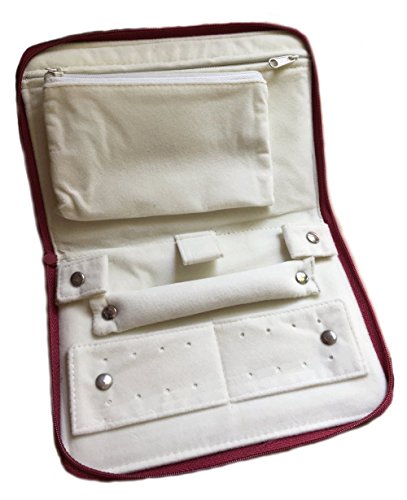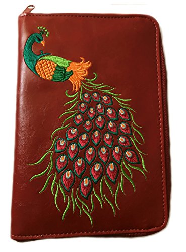 Vegan leather jewelry pouch for travel with peacock embroidery (Red)