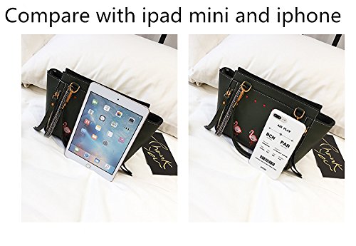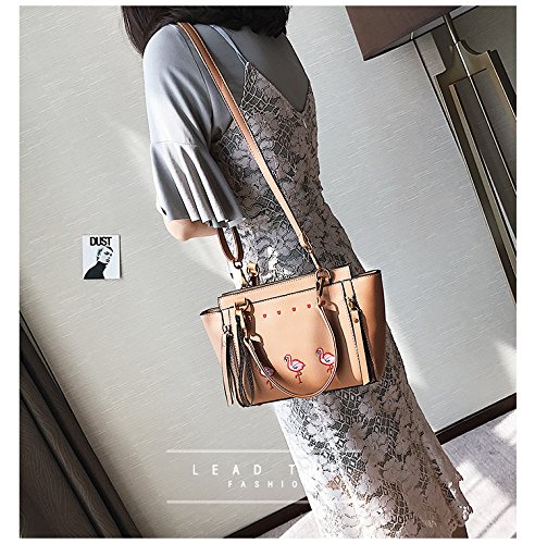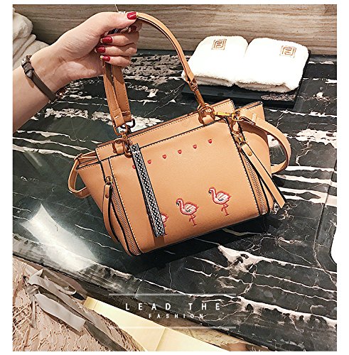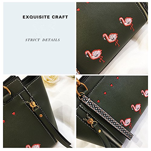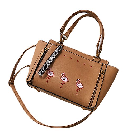 Vicue Women’s Leather Zipper Flamingo Embroidery Handbags Shoulder Bag Crossbody Bag
