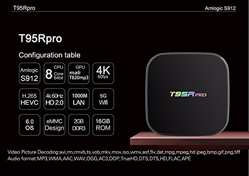 -. Title : Miroha T95R Pro S912 Octa-core CPU Android 6.0 TV Box 2GB Ram+16GB Rom WIFI 2.4G/5.0G Bluetooth Streaming Media Player