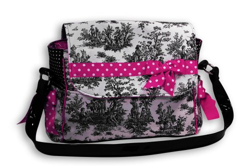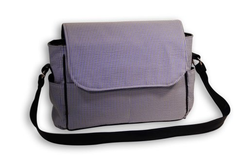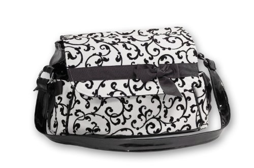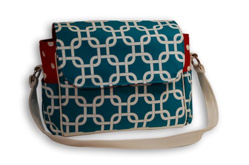 Carry baby's essentials in style with Caught ya Lookin's large diaper bag. Bag has caramel, red, and black woven plaid exterior with black patent leather bottom, sides, and handles. Plastic lined interior makes cleaning spills a breeze. Measures 14" x 10.5". Made in USA.Feature