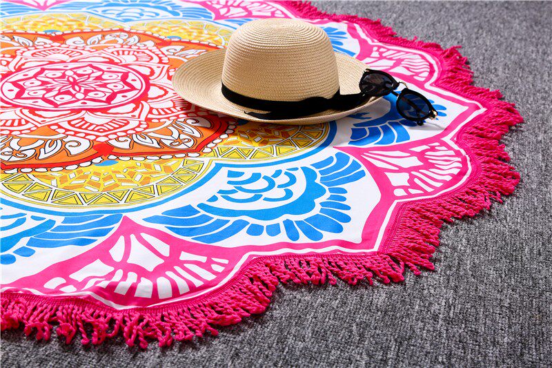 Mutlipurpose beach clothsCan use as :Scarve , sofa cover , Dress/ sarong, beach mat , floor mat , table cloth ......Material : polyester Size: 150cm*150cm