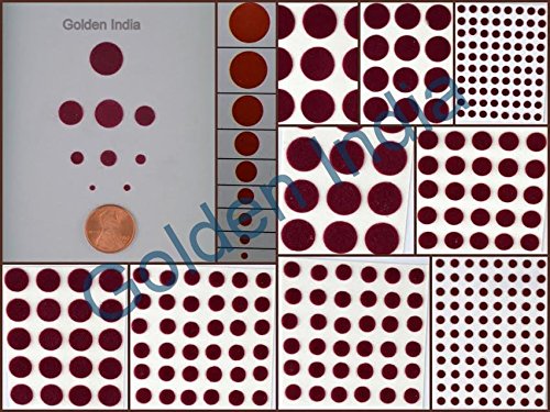Velvet Bindi Tattoo Stickers 9 Cards of different sized Polka Dot Maroon Red Adhesive Body Jewelry (P16)