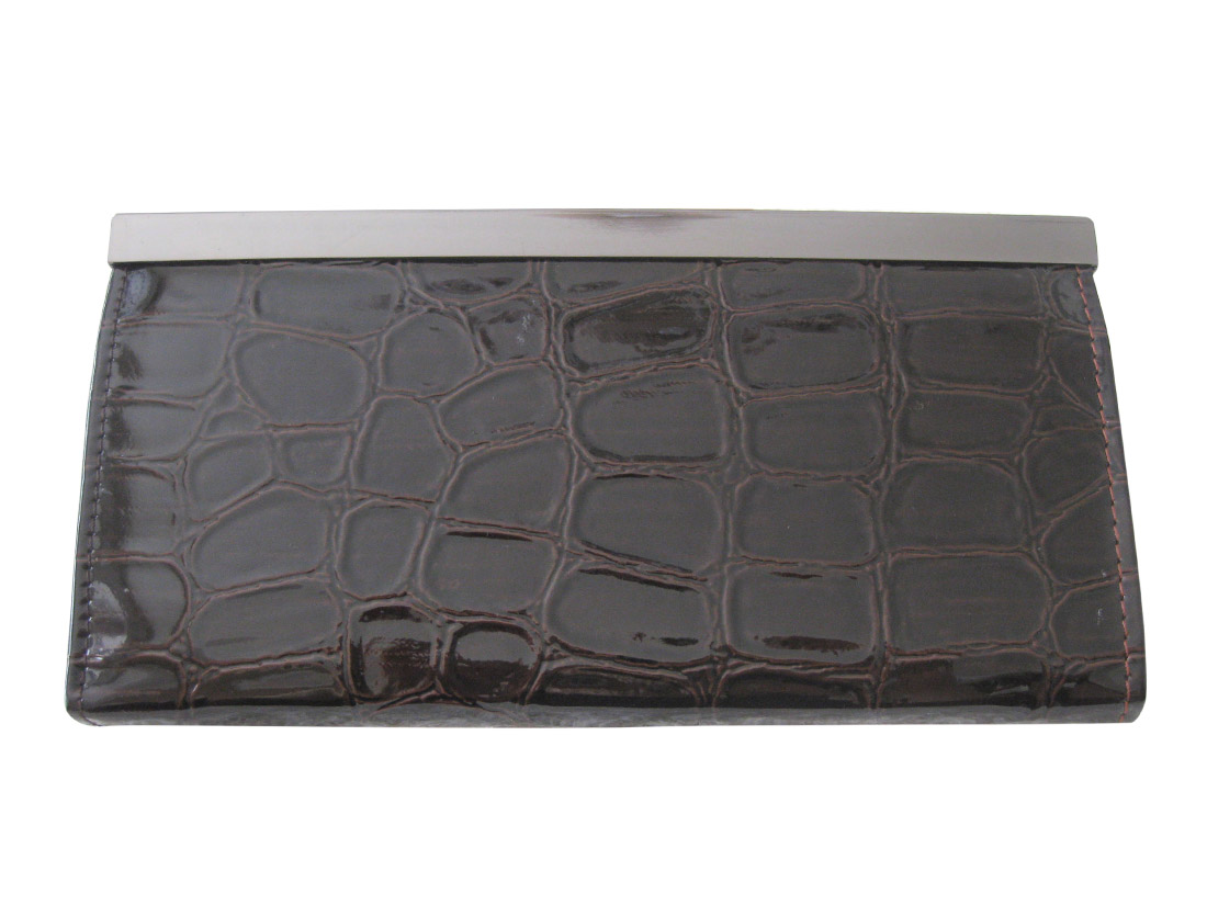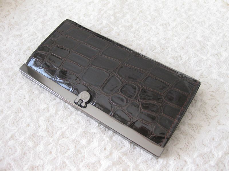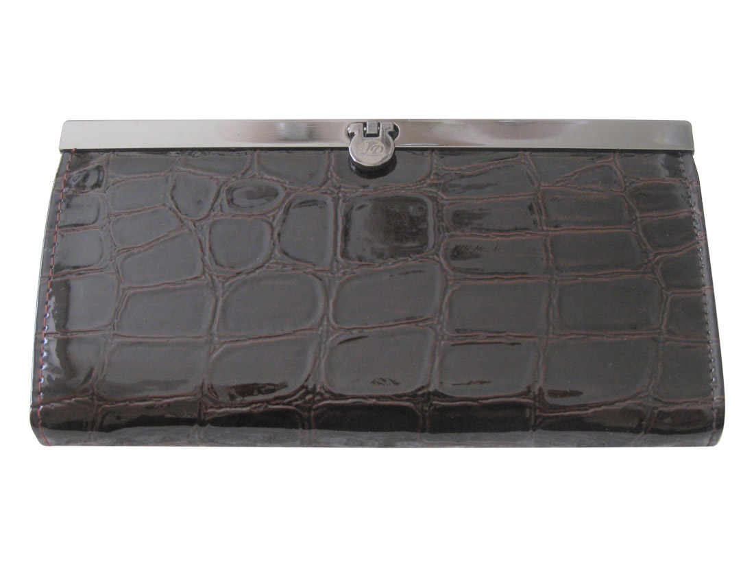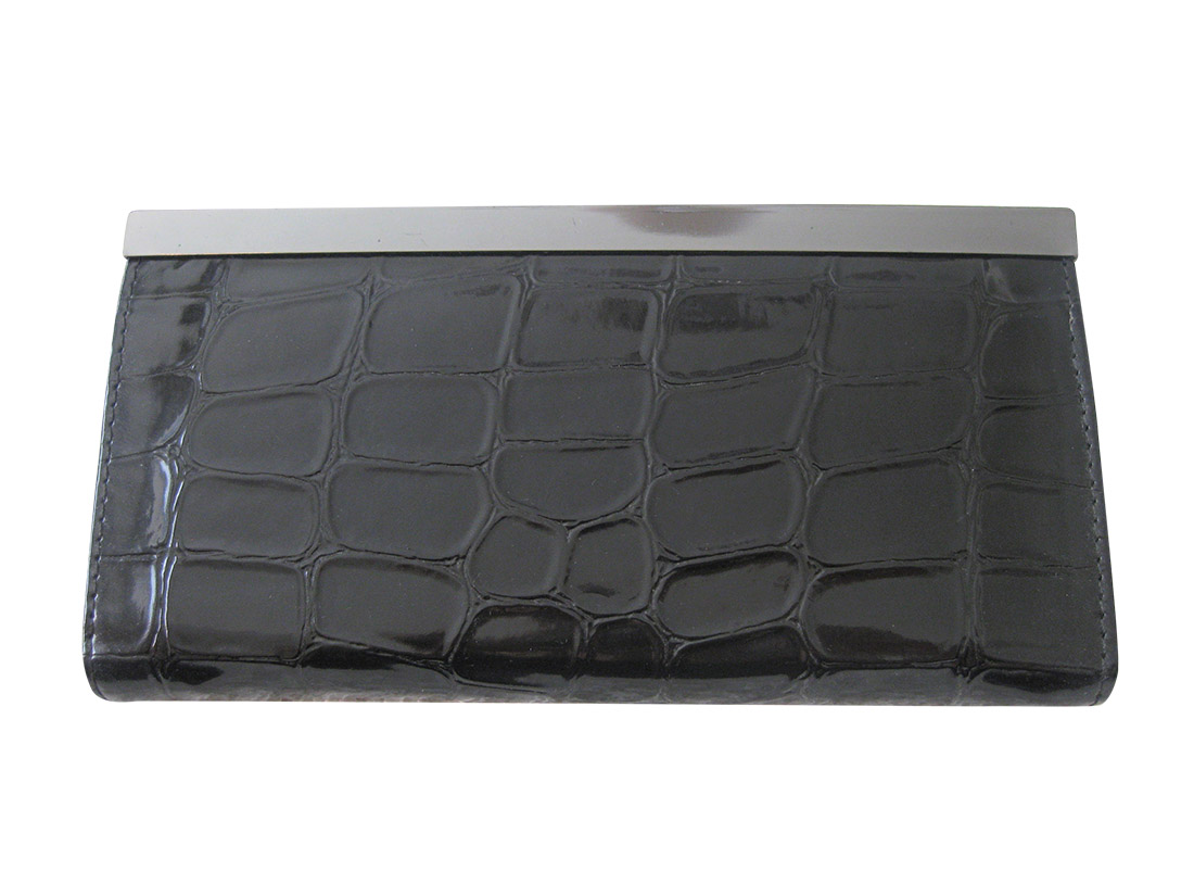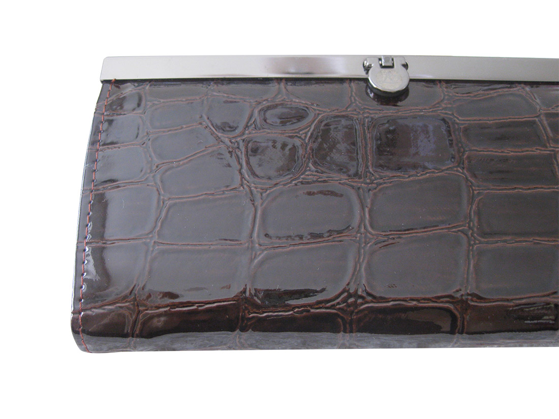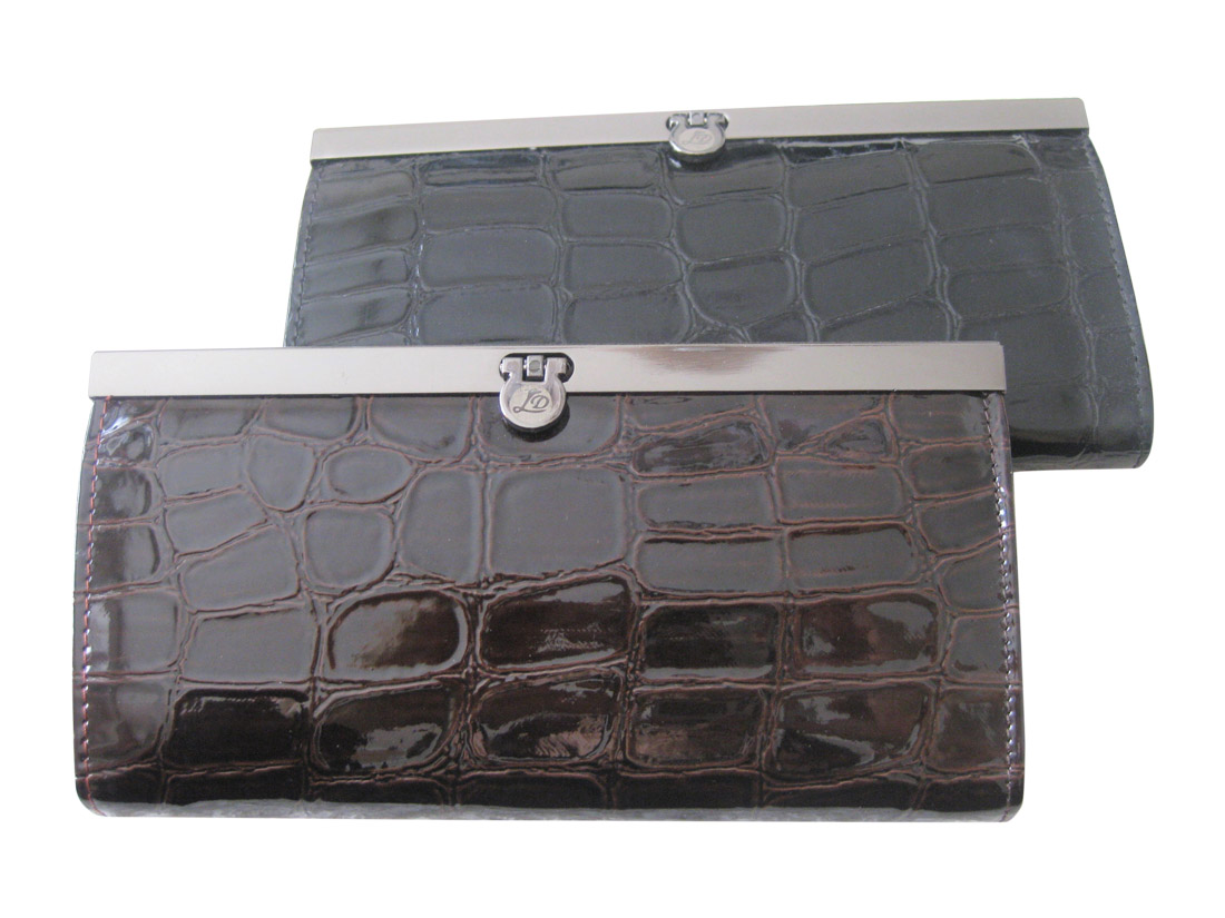 クロコ型押しデザイン リュクスエナメル長財布  <Brown,Black>