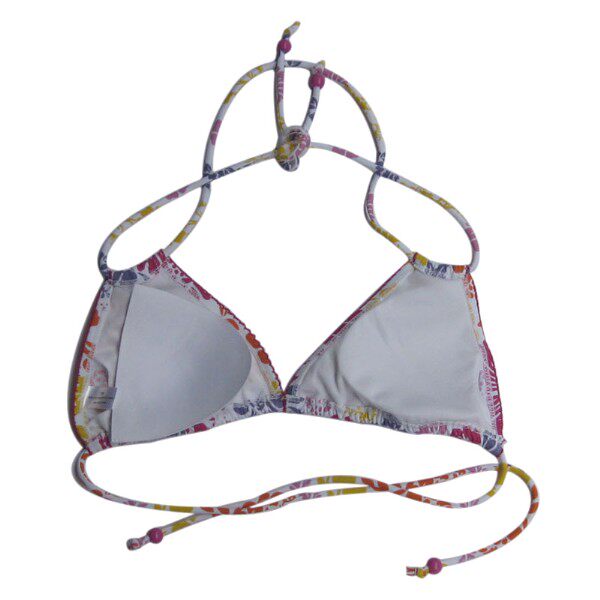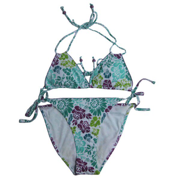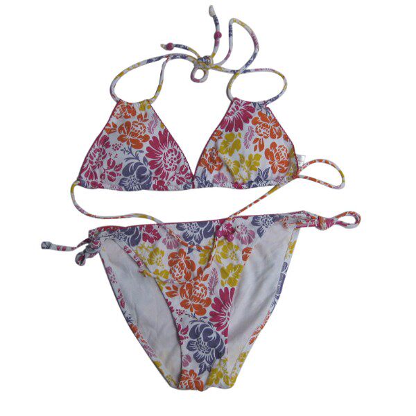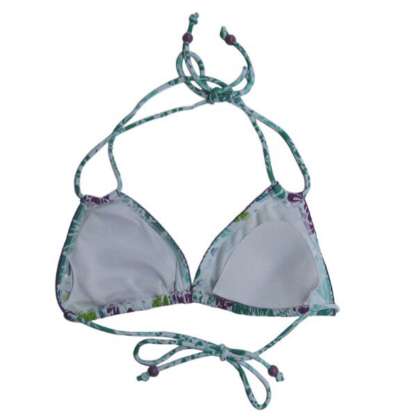 | 款式描述 | 分体泳衣,,无钢圈,挂脖系带式,后系带,配系带三角裤 | ||