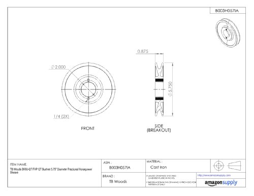 TB Woods BK60-QT FHP QT Bushed 5.75" Diameter Fractional Horsepower Sheave