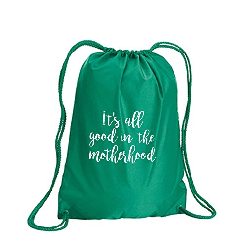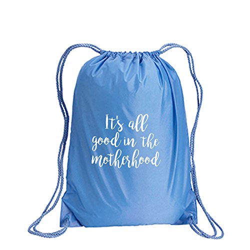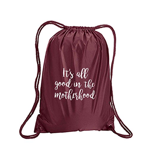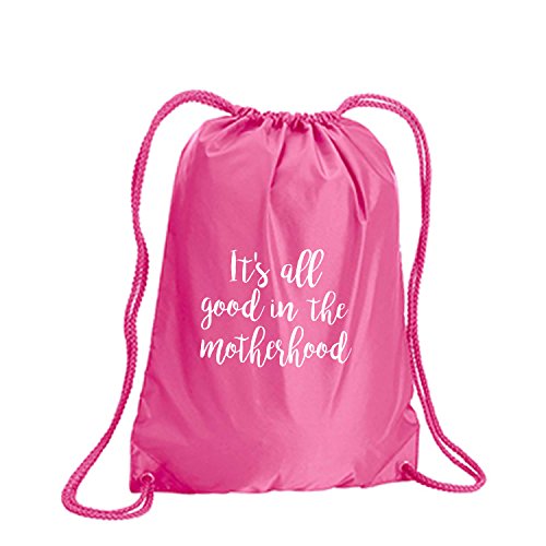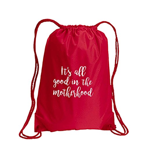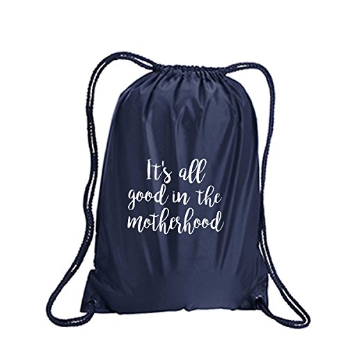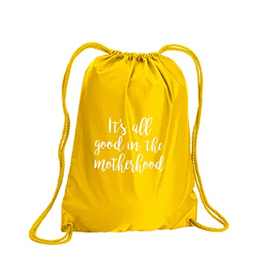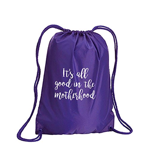 Product Description This durable and stylish nylon tote features "It's all good in the motherhood" on a cinch pack tote with white ink. Bag comes in small and large sizes and is made of a durable 210 Denier nylon and has color-matched draw cords. Printed in the USA on an imported bag. 0