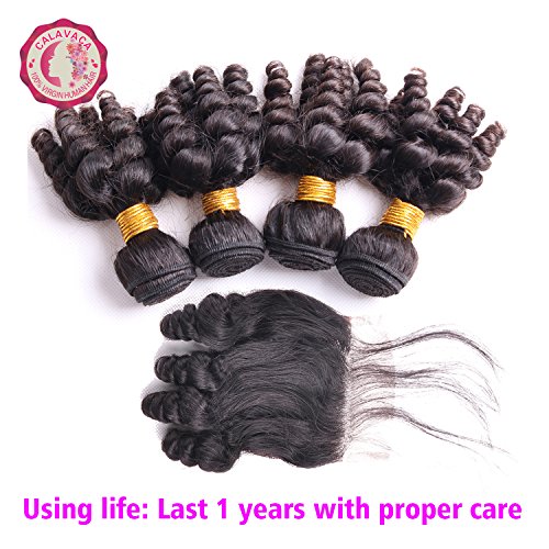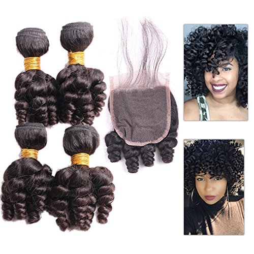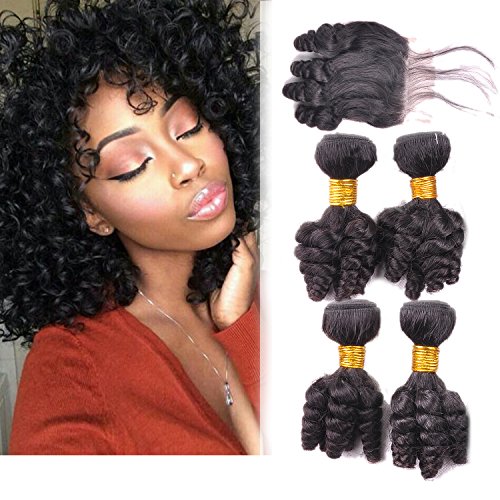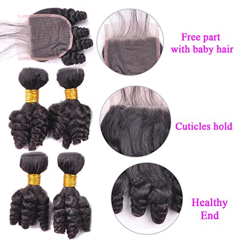 Funmi Curl 4 Bundles With 4x4Closure Natural Black Unprocessed Human Remy Hair Short Curly Weave Brazilian Virgin Hair Weft 250g/lot(10", Funmi with Closure)