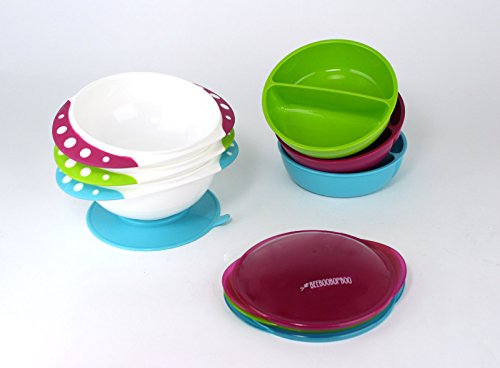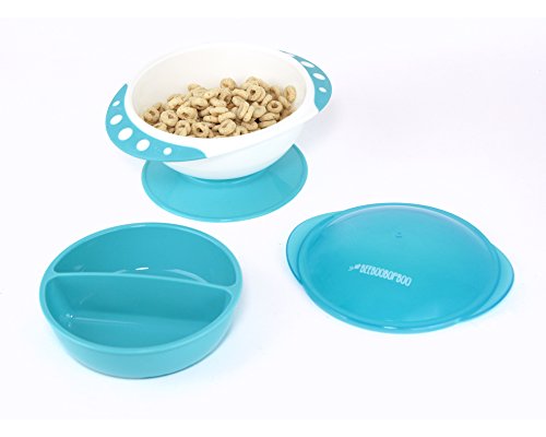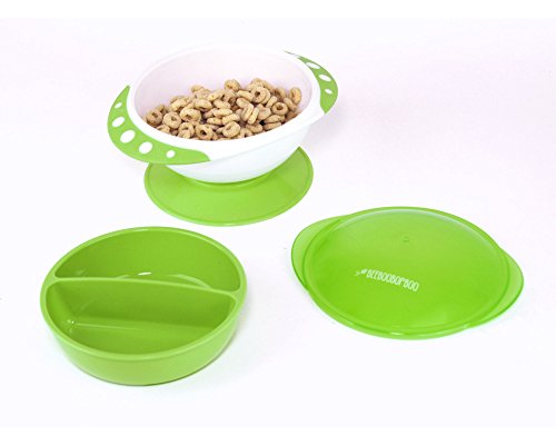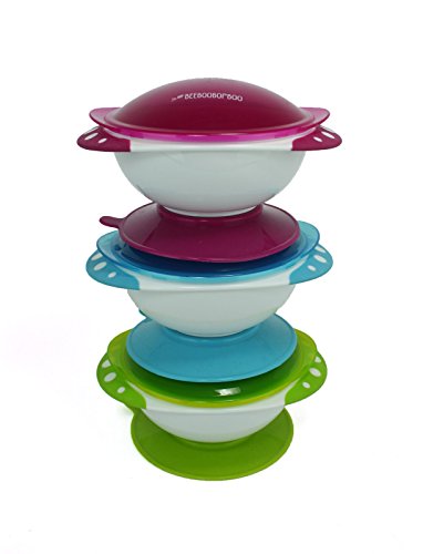 -. Feature : Baby Suction bowls with snack compartments inside from Beeboobopboo strong snap top lids designed to suction to any surface three different colors perfect for babies and toddlers spill proof easy clean BPA & BPS free
