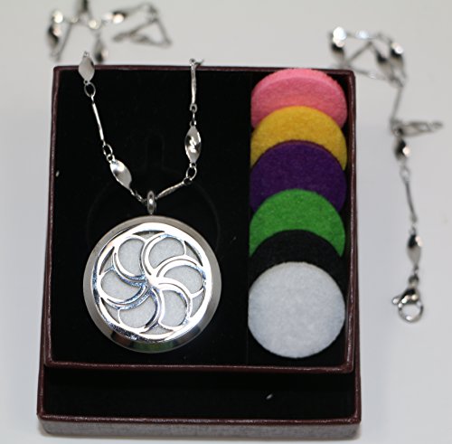 YOU CHOOSE. With diffuser jewelry you choose which essential oil you need or want to wear and match the pendant and insert pad to your mood and your outfit. Includes 6 different interchangeable washable pads for variety and a beautiful 20" leaf pattern necklace.