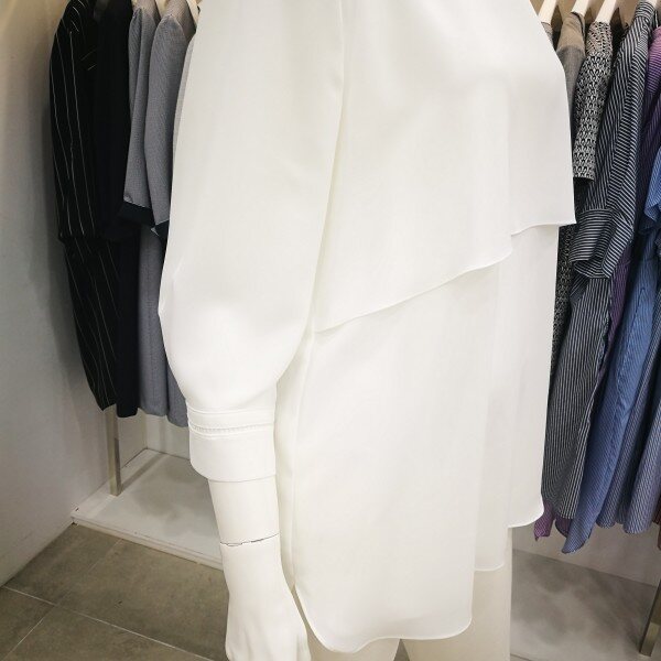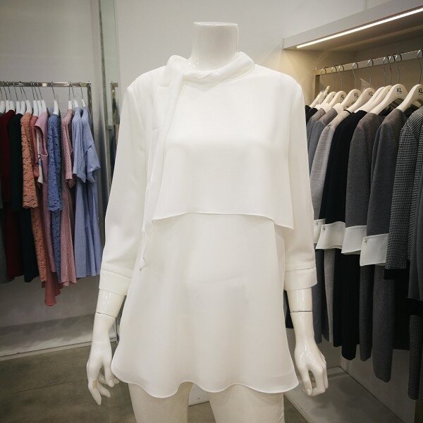 여성스러움이 뿜뿜 느껴지는 7부 블라우스입니다. 하늘하늘한 소재라서 더욱 여리여리 해보이고 심플해보이지만 소매 펀칭과 앞부분 프릴이 세련된 느낌을 연출해준답니다. 스카프를 다양한 방법으로 코디해보세요^^