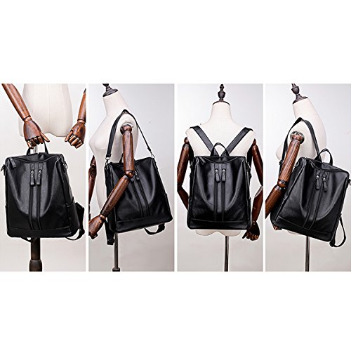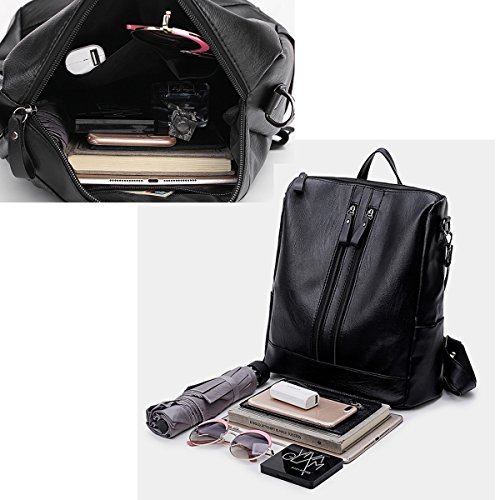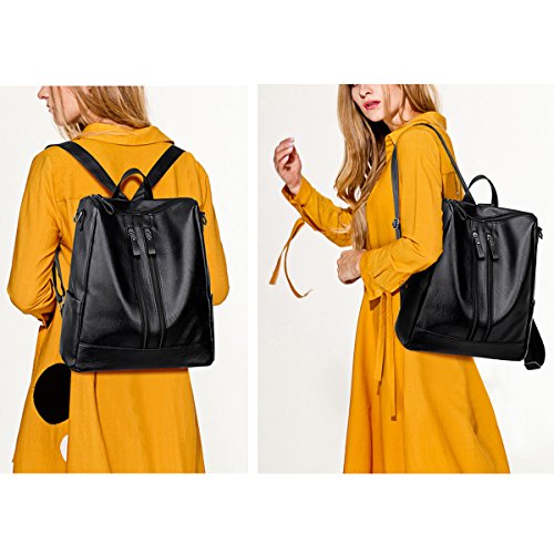 -. Title : Black Leather Backpack for Womens - Fashion Faux PU Leather Lightweight Purse Versatile Shoulder Bag Classic Fashion