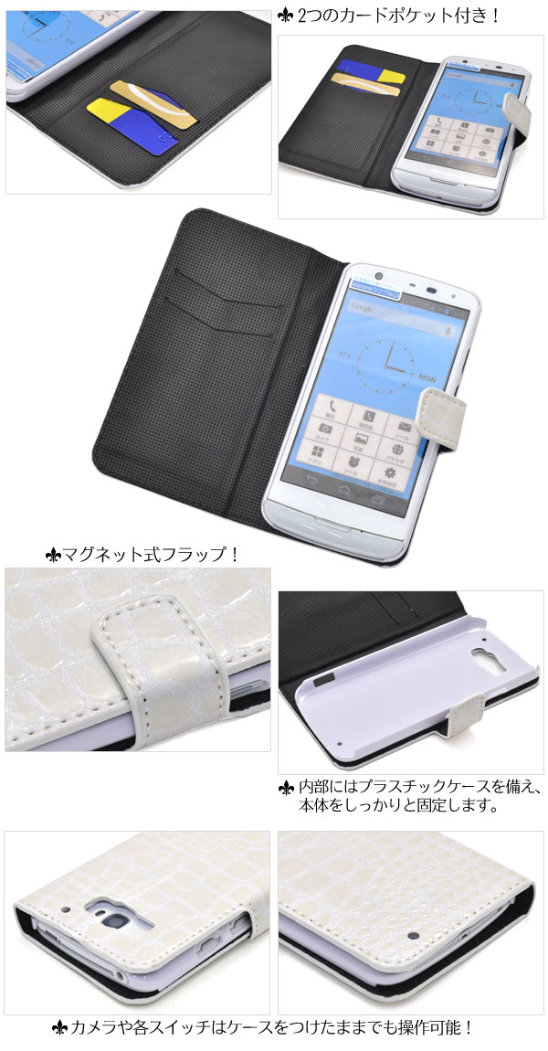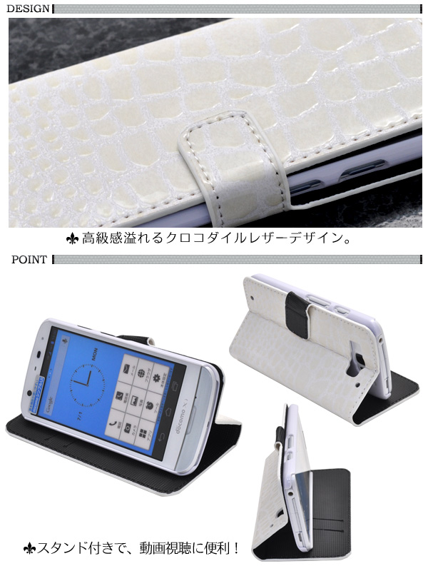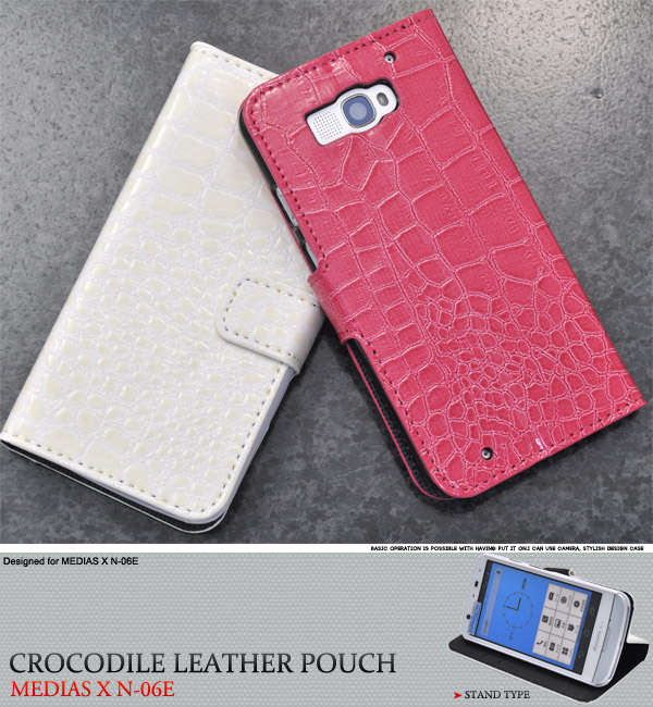 | MEDIAS X N-06E用クロコダイルレザーデザインスタンドケースポーチ | | | |
