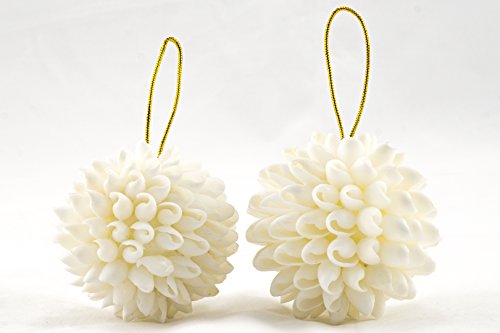 - Set of 2 white bubble shell balls ornaments are 3", loop is an additional 2"