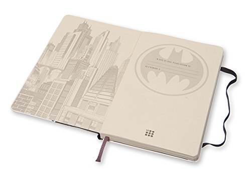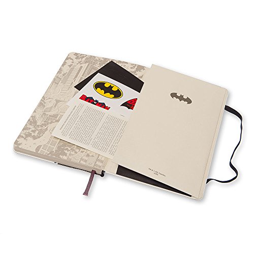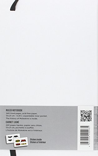 -. Feature : Limited Edition Moleskine Notebook features Batman / Large-sized hard-cover book has 240 ruled pages / Cover and endpapers have themed graphics / Includes 2 sheets of Batman stickers / Measures 5 x 8.25 inches