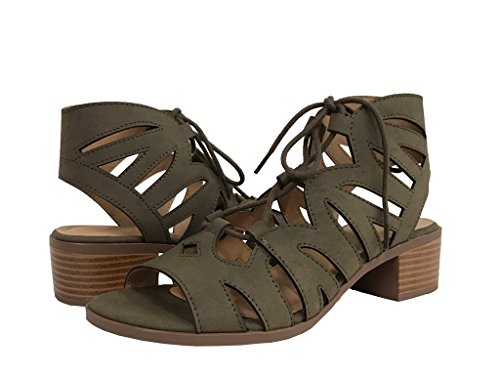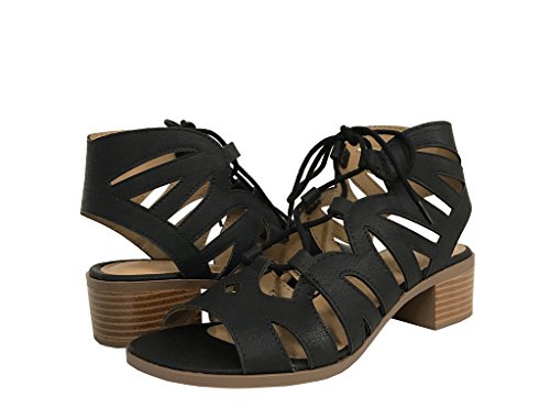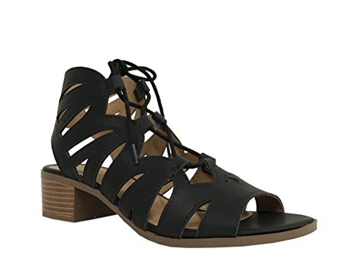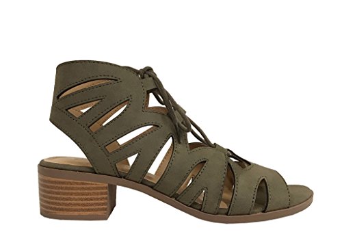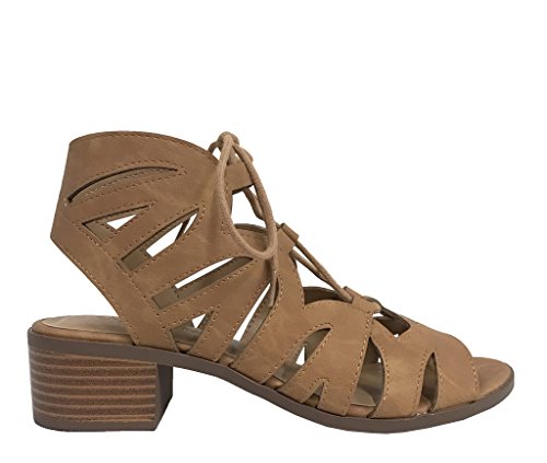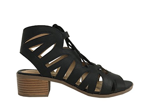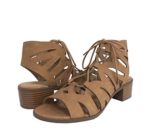DALLES! Women's Open Toe Cutout Lace Up Stacked Heel Sandals
