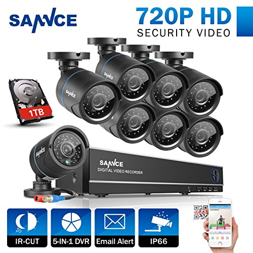-. Title : SANNCE 8-Channel HD 1080N Home Security System DVR and (8) 720P Indoor/Outdoor Weatherproof Surveillance Cameras with IR Night Vision LEDs, Remote Access - 1TB Surveillance Hard Disk Drive