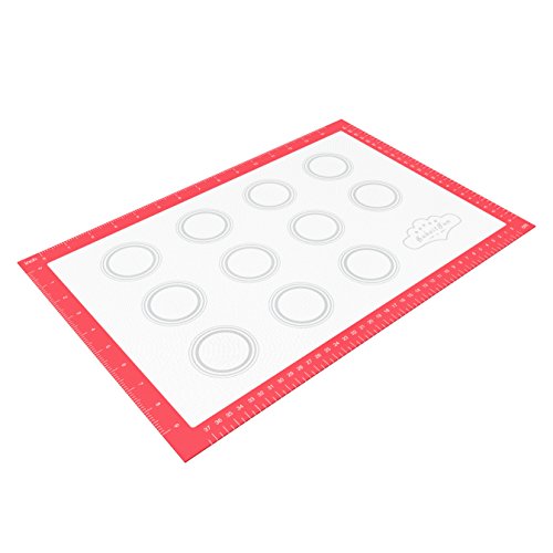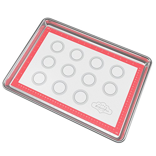 PERFECT BAKING SET: Half Sheet + BakeitFun Silicone Red Baking Mat. Awesome durability of tray with use of reusable parchment paper. Tray measures 18-inch length by 13-inch width by 1.2-inch height.^? BUILT TO LAST - Built with high quality Natural Aluminum are made to last