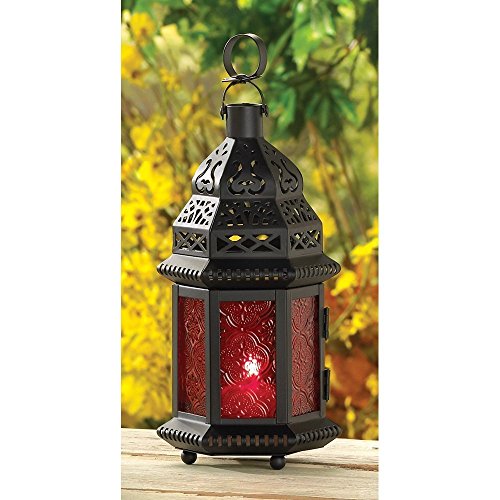 -. Title : Red Glass Metal Moroccan Candle Holder Hanging Lantern (2 Lanterns)