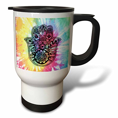 3dRose tm_200822_1 Tie Dye Hamsa Travel Mug, 14 oz, White
