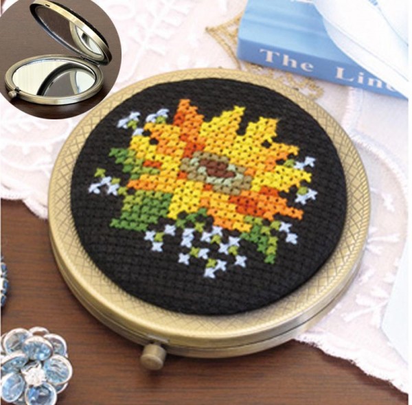 人気の花柄を上品にあしらった、エレガントな刺しゅう小物のキット。開くと片面は拡大鏡の両面コンパクトミラーです。技法はクロス・ステッチ。 |