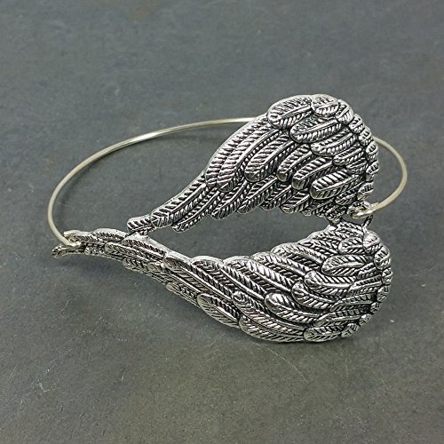 -. Title : Large Angel Wings Bangle Bracelet - Sterling Silver Filled