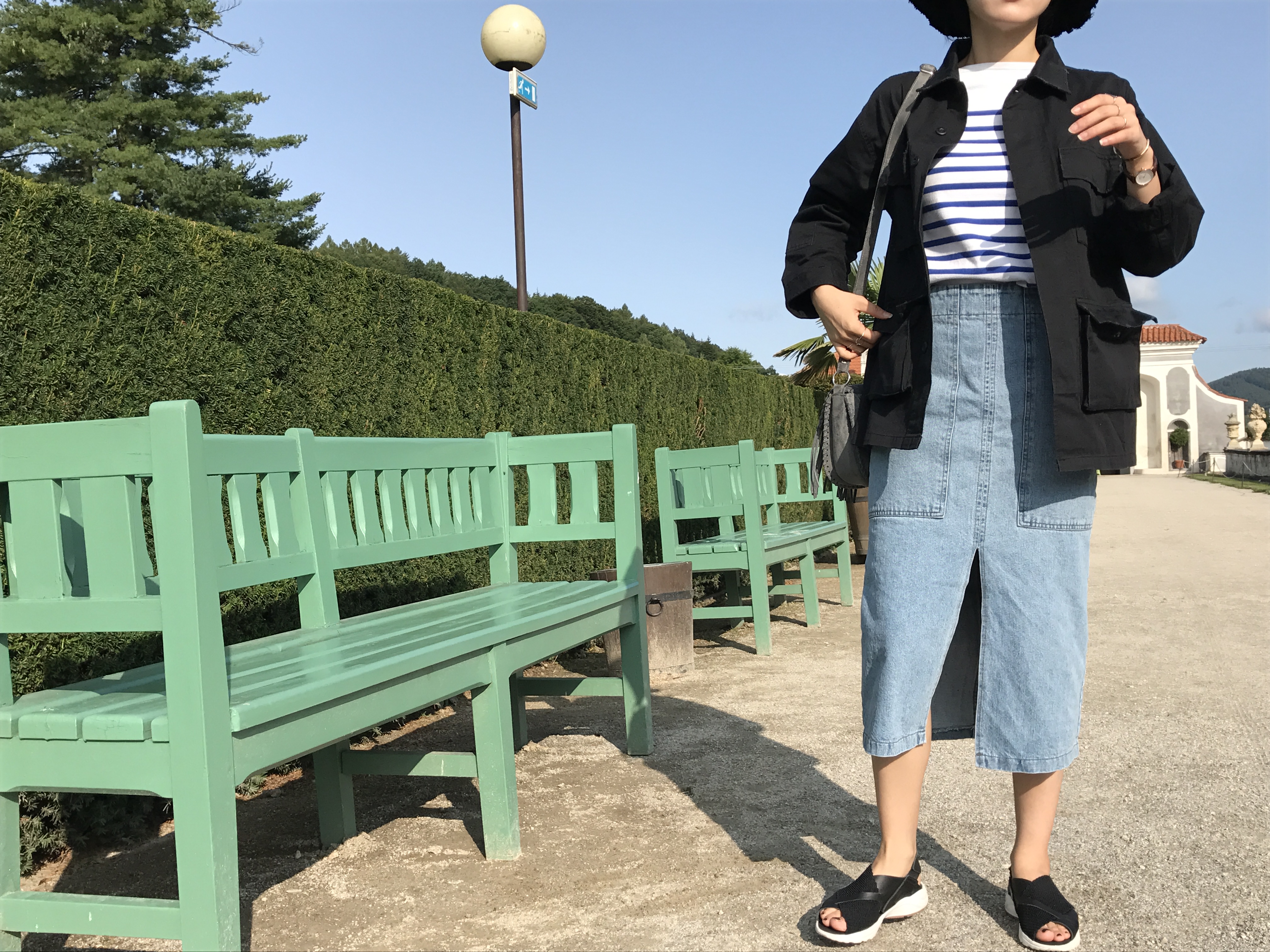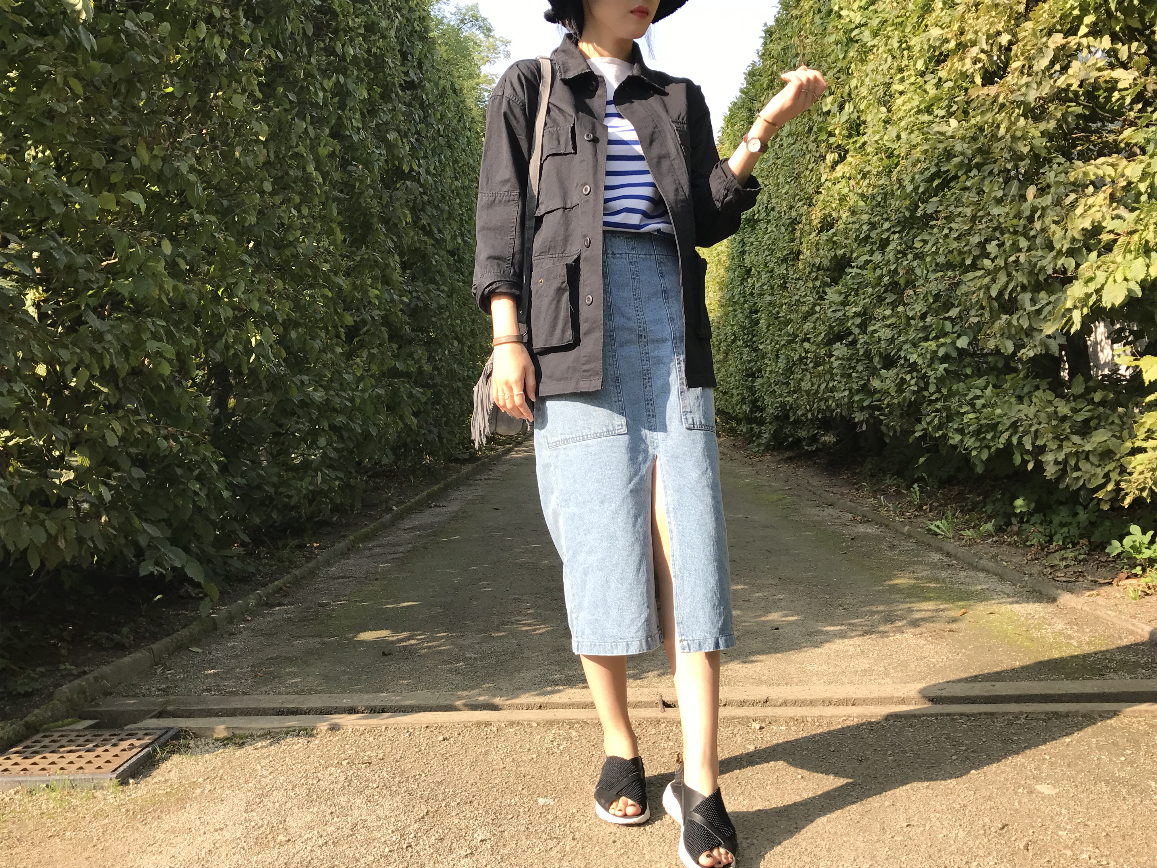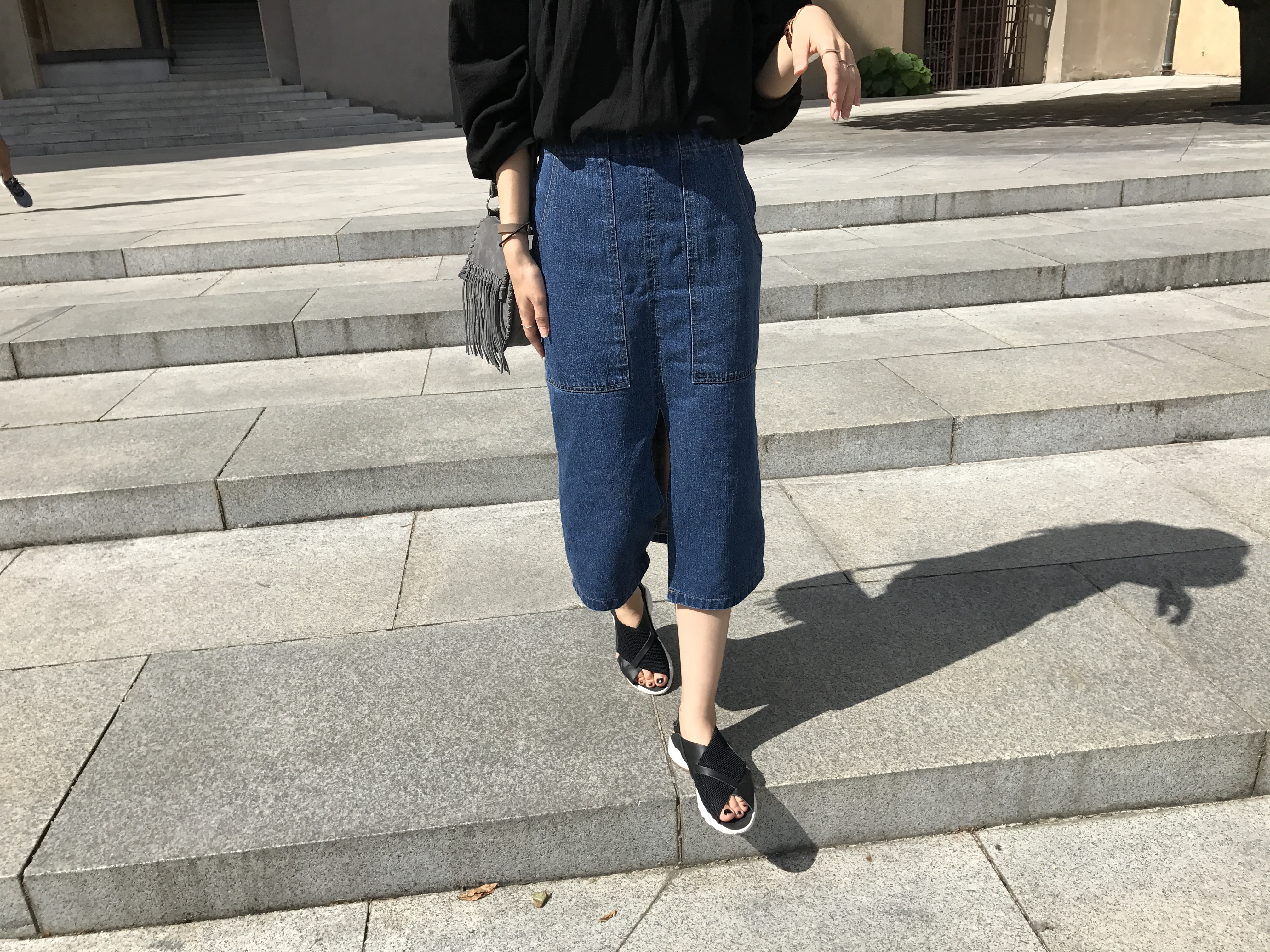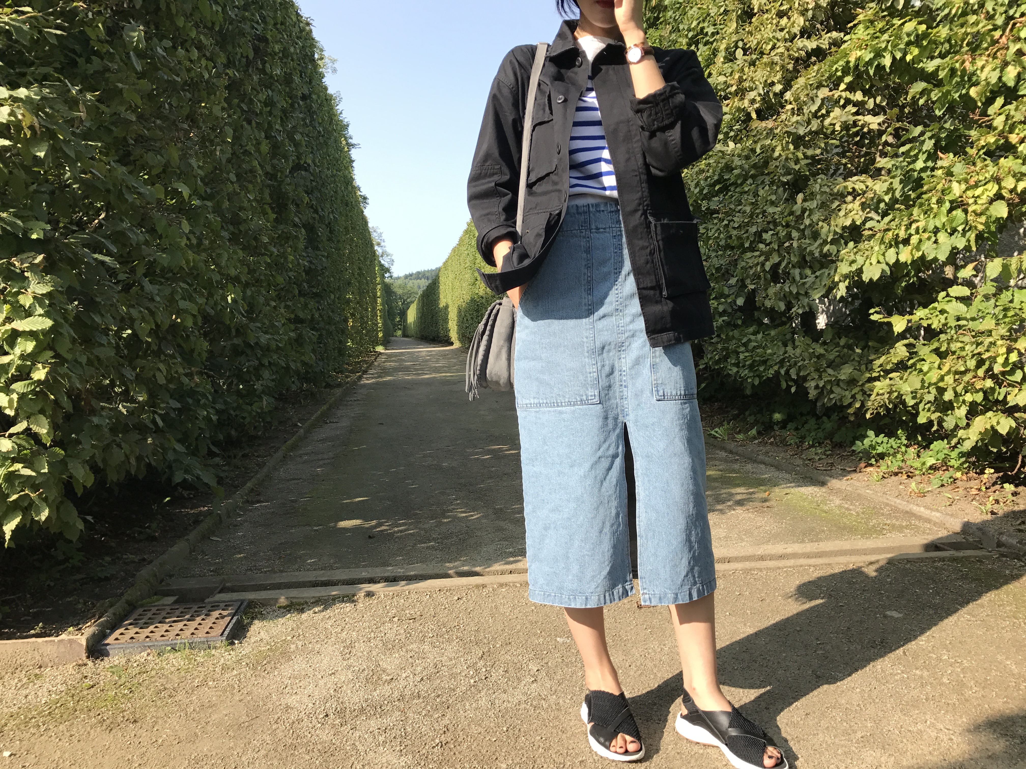 Long sleeved denim skirts and curly bands denim A line autumn