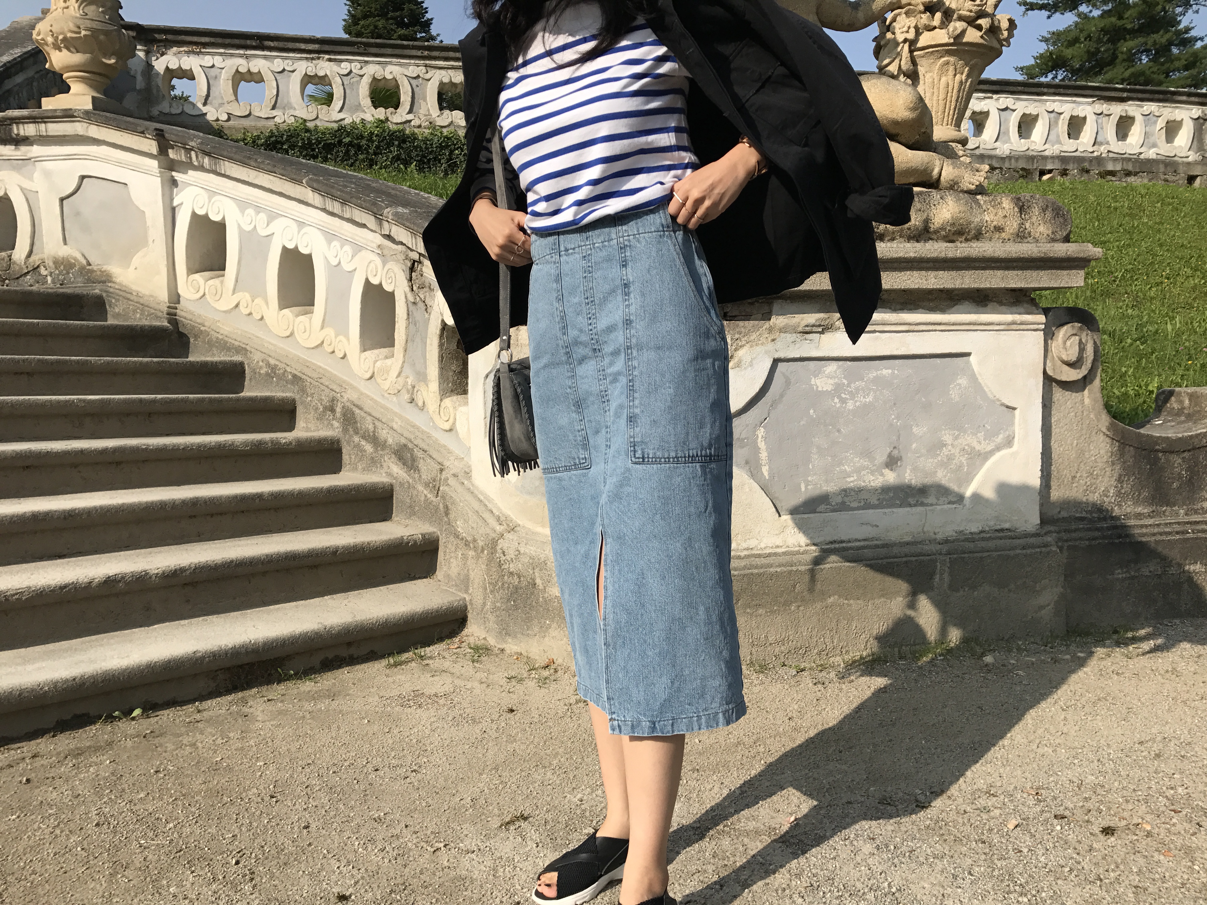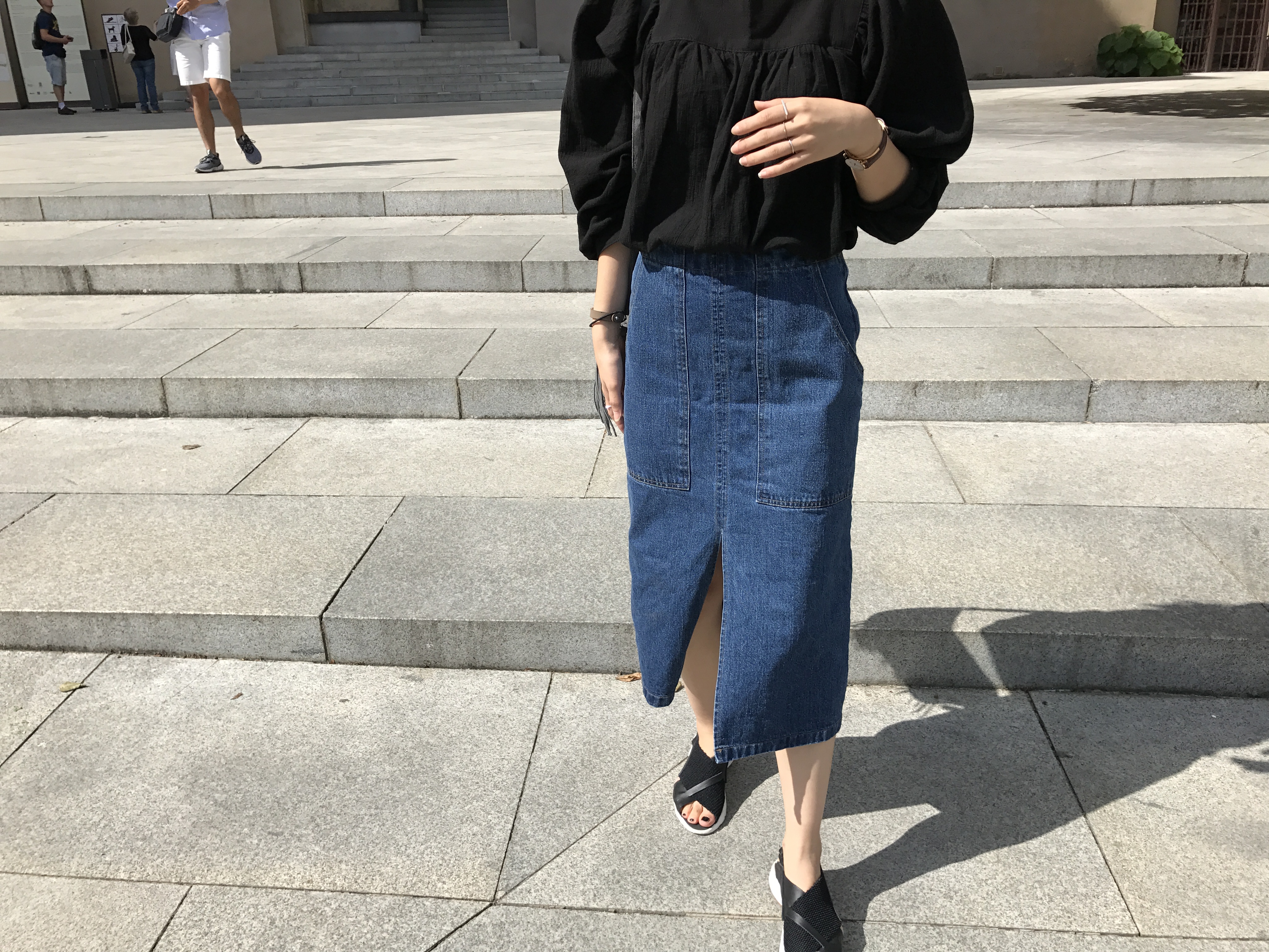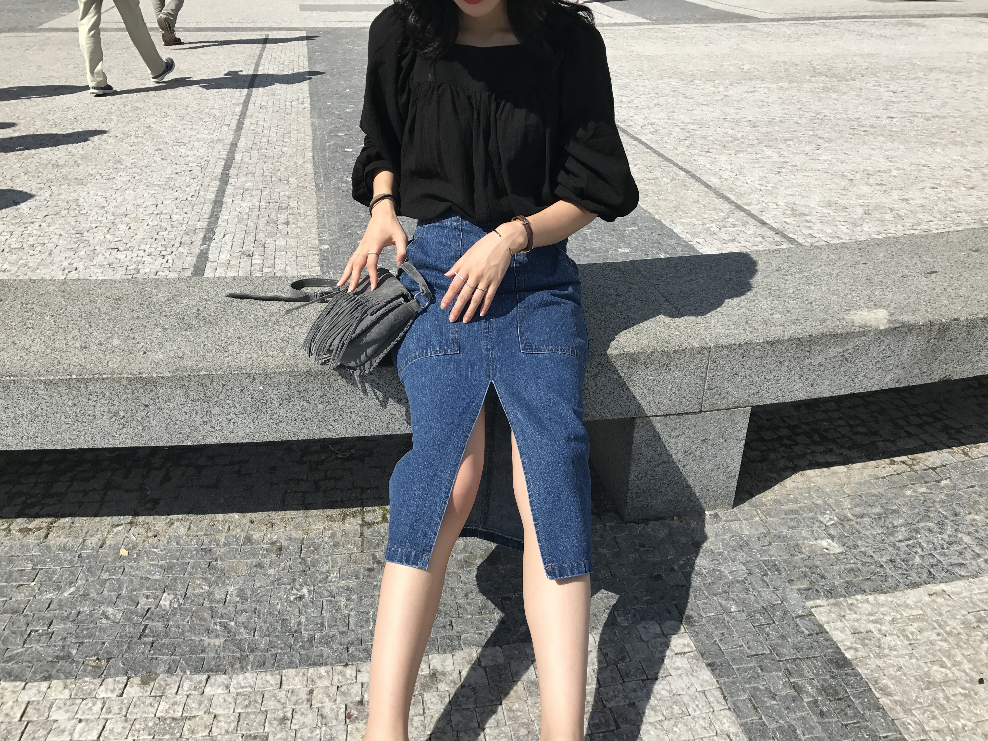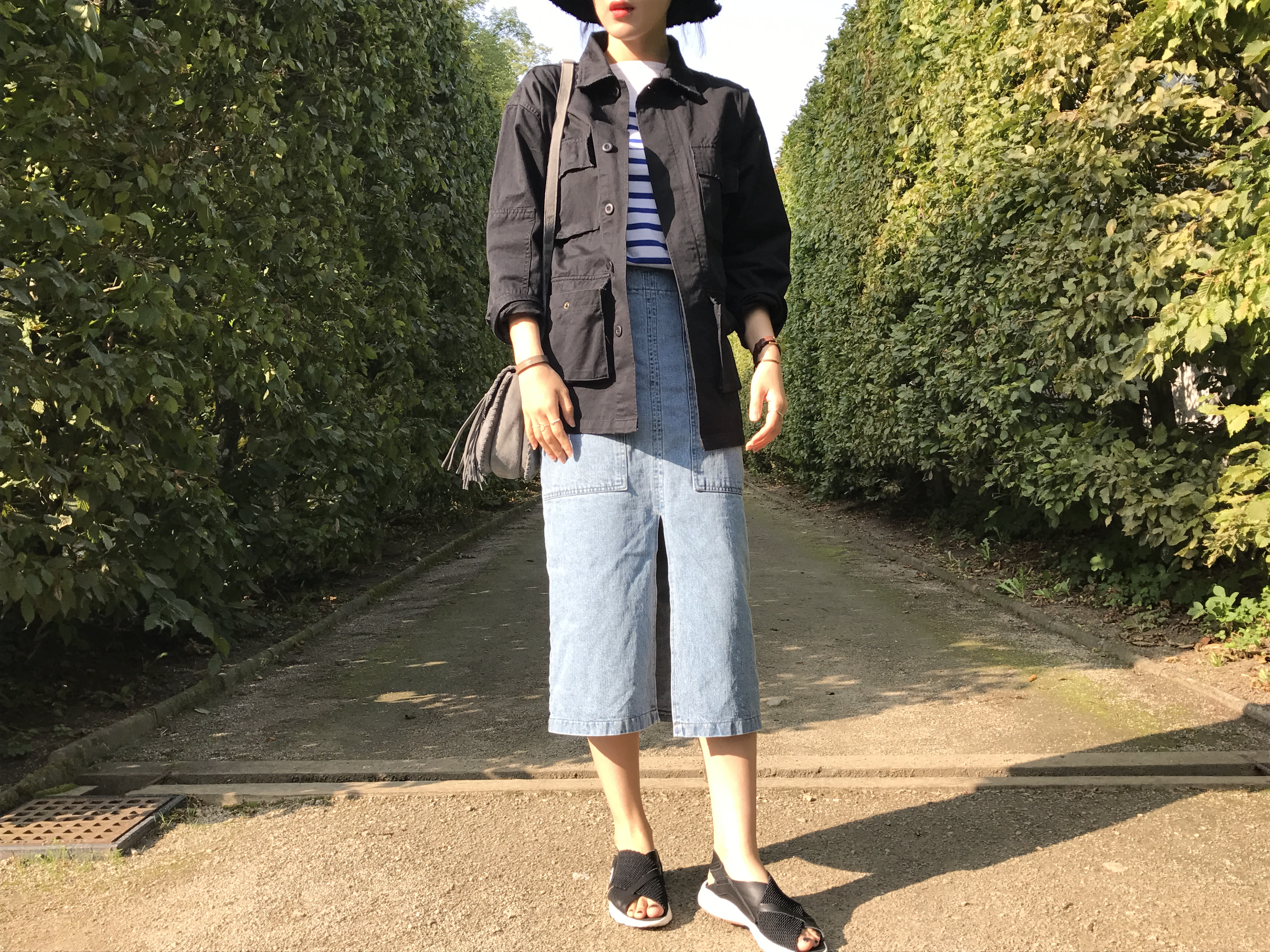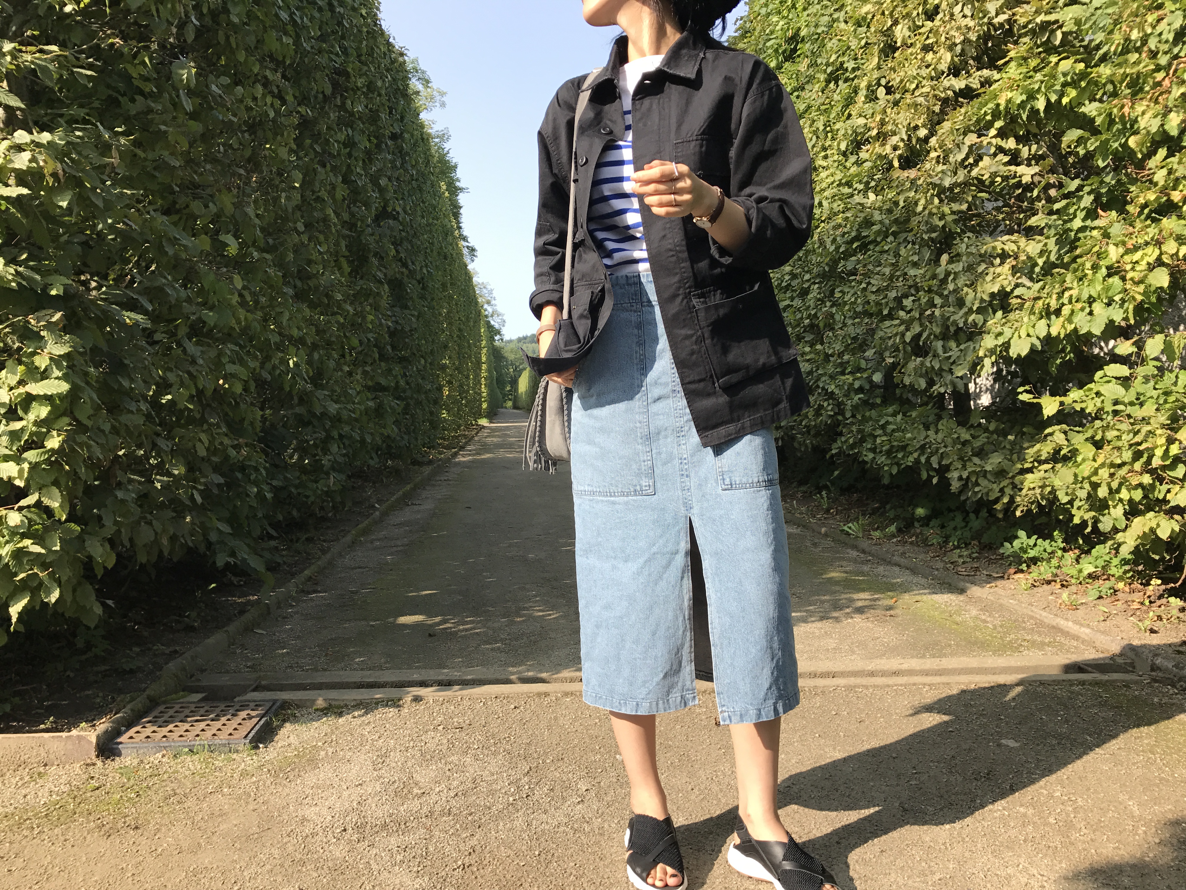 Long sleeved denim skirts and curly bands denim A line autumn