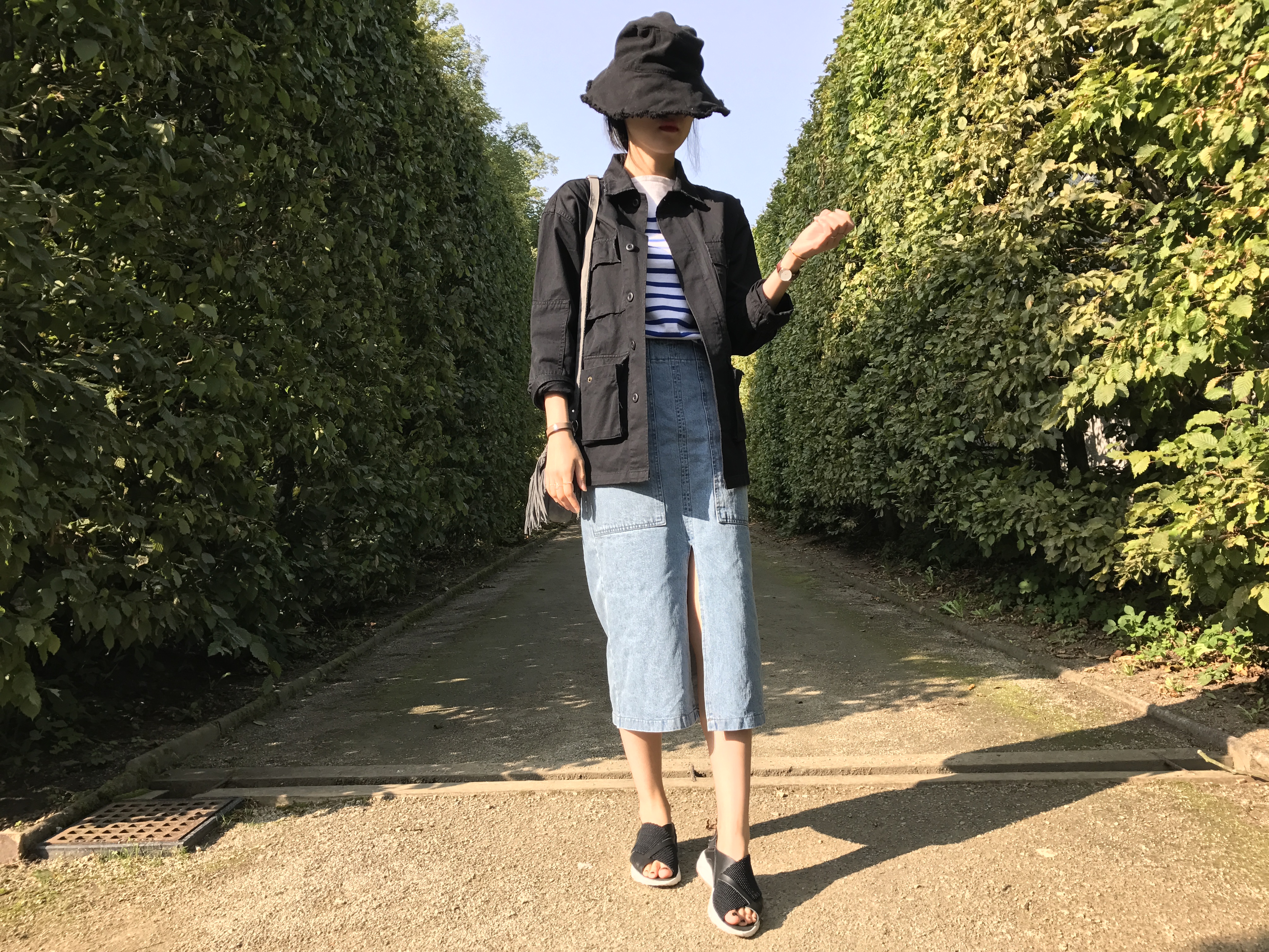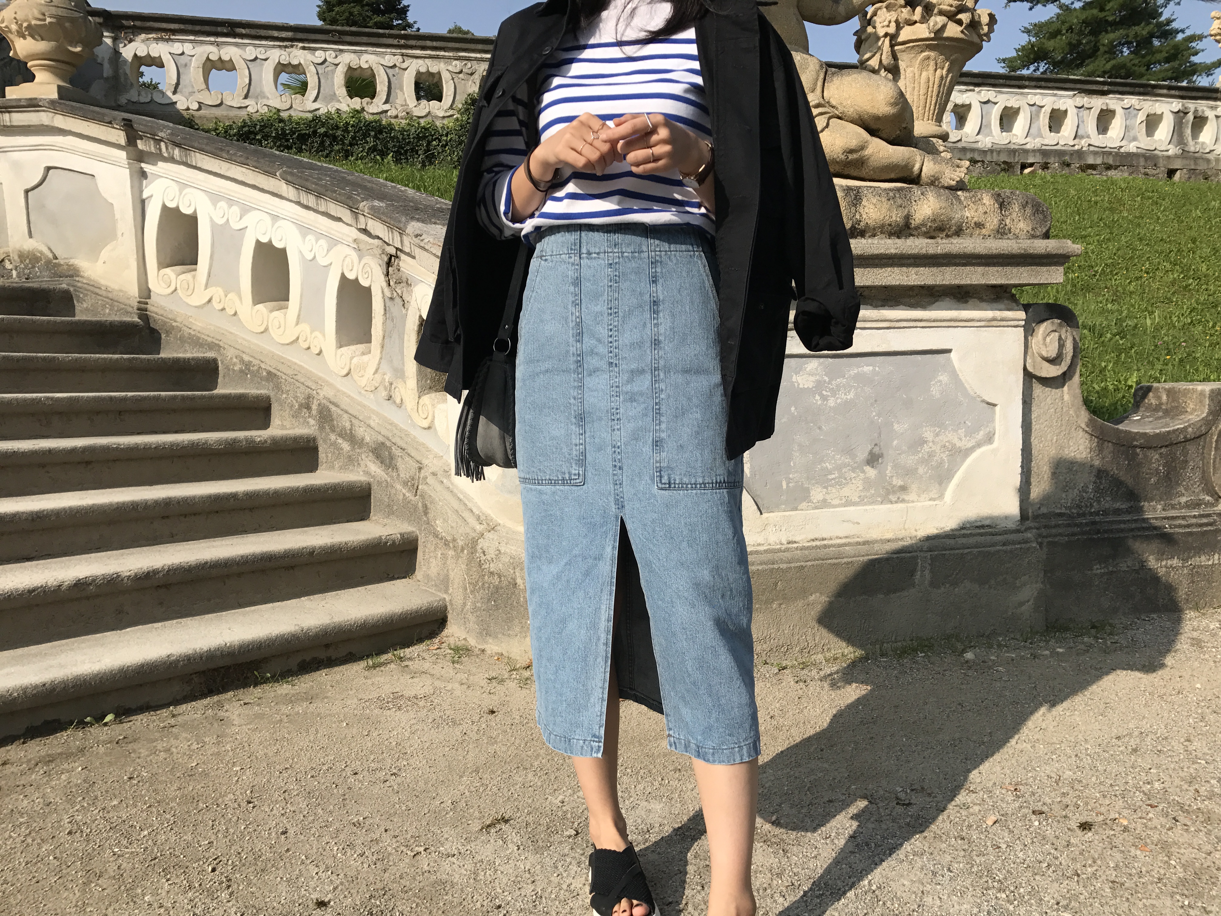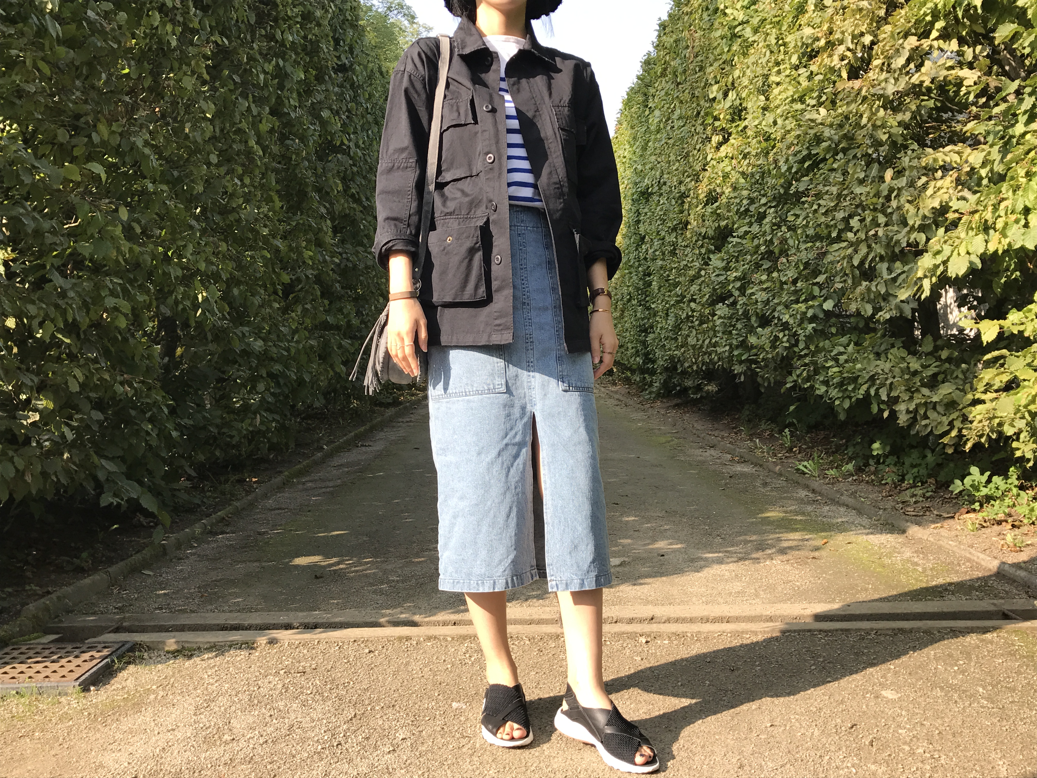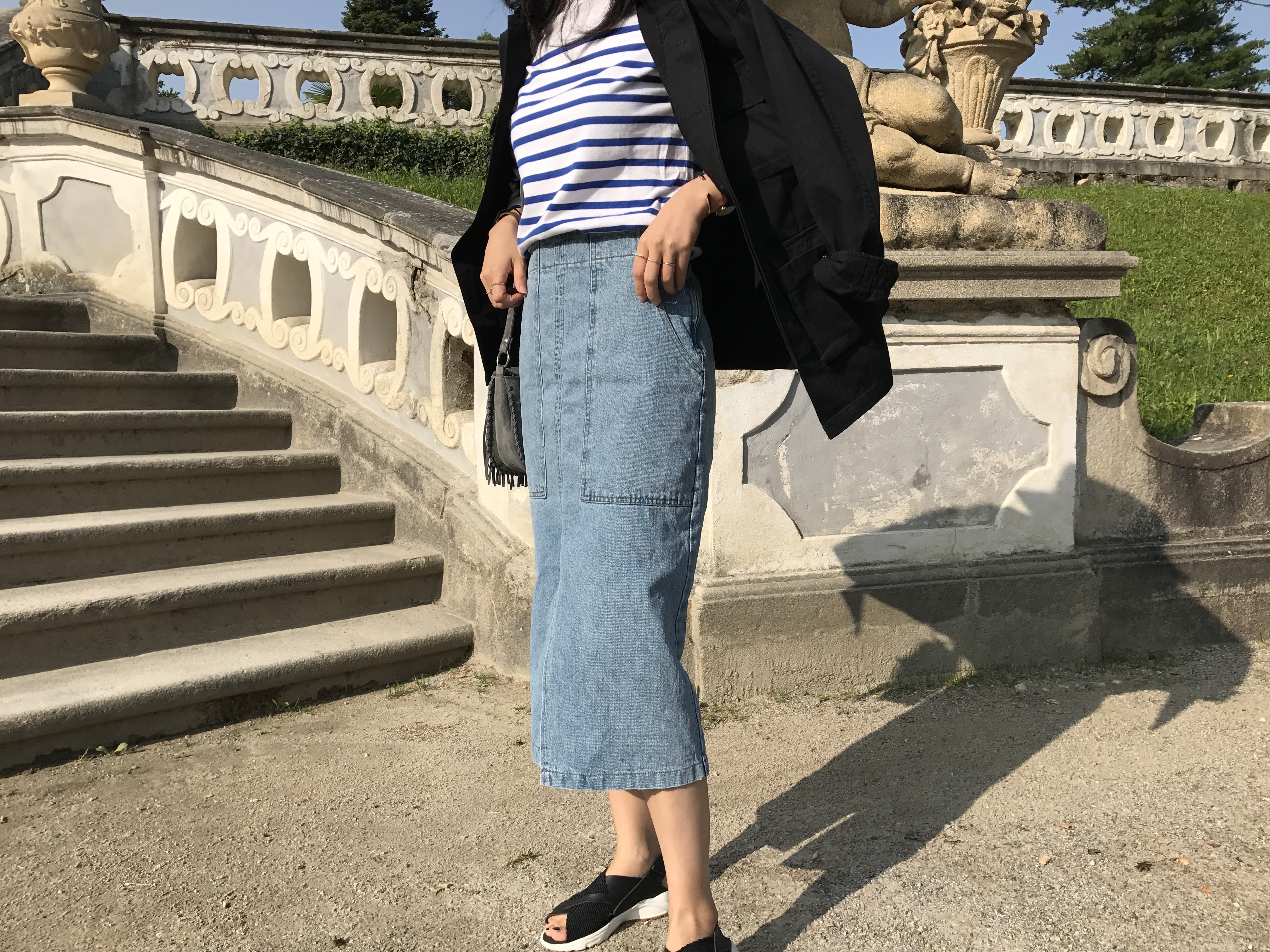 Long sleeved denim skirts and curly bands denim A line autumn