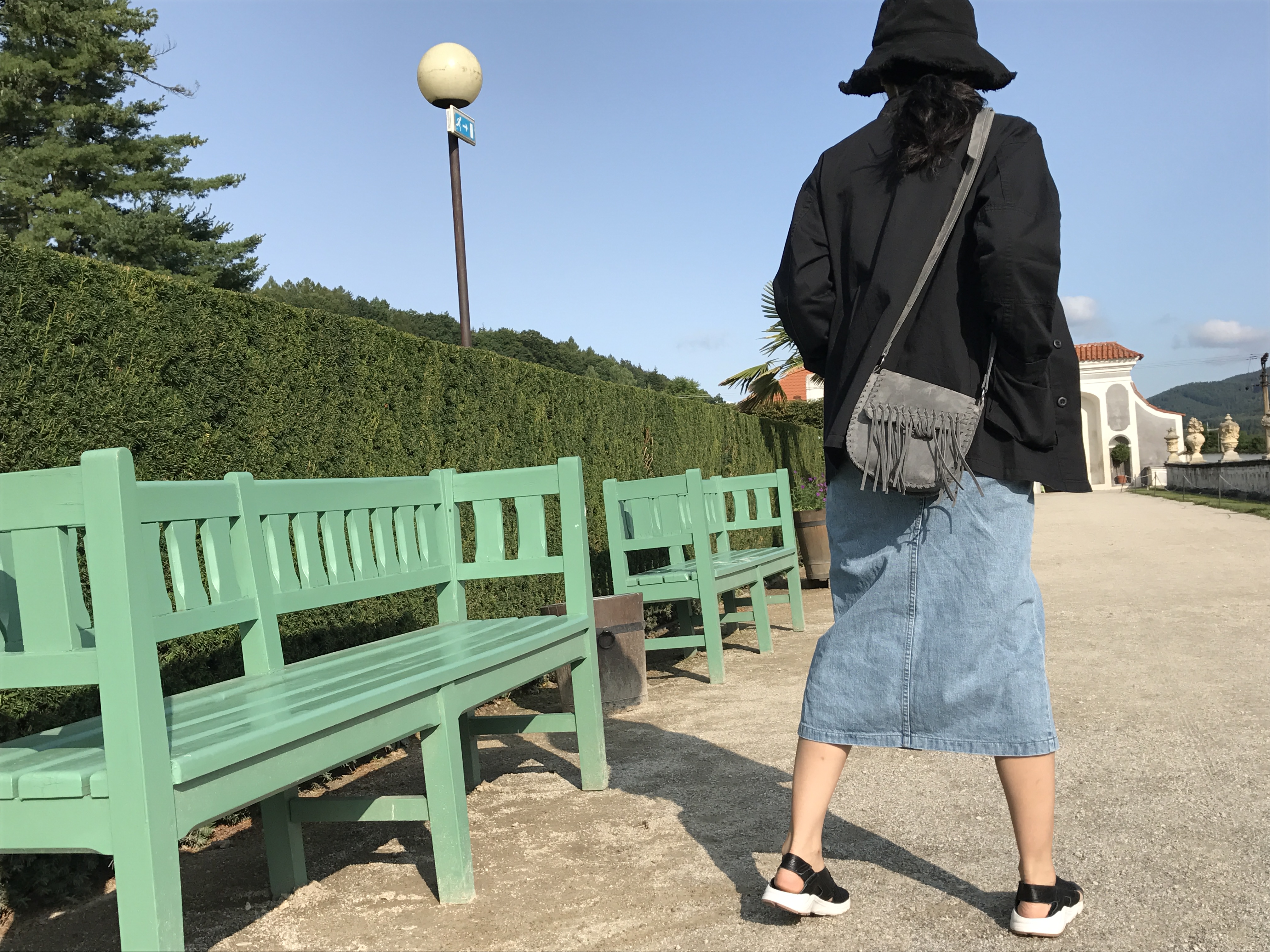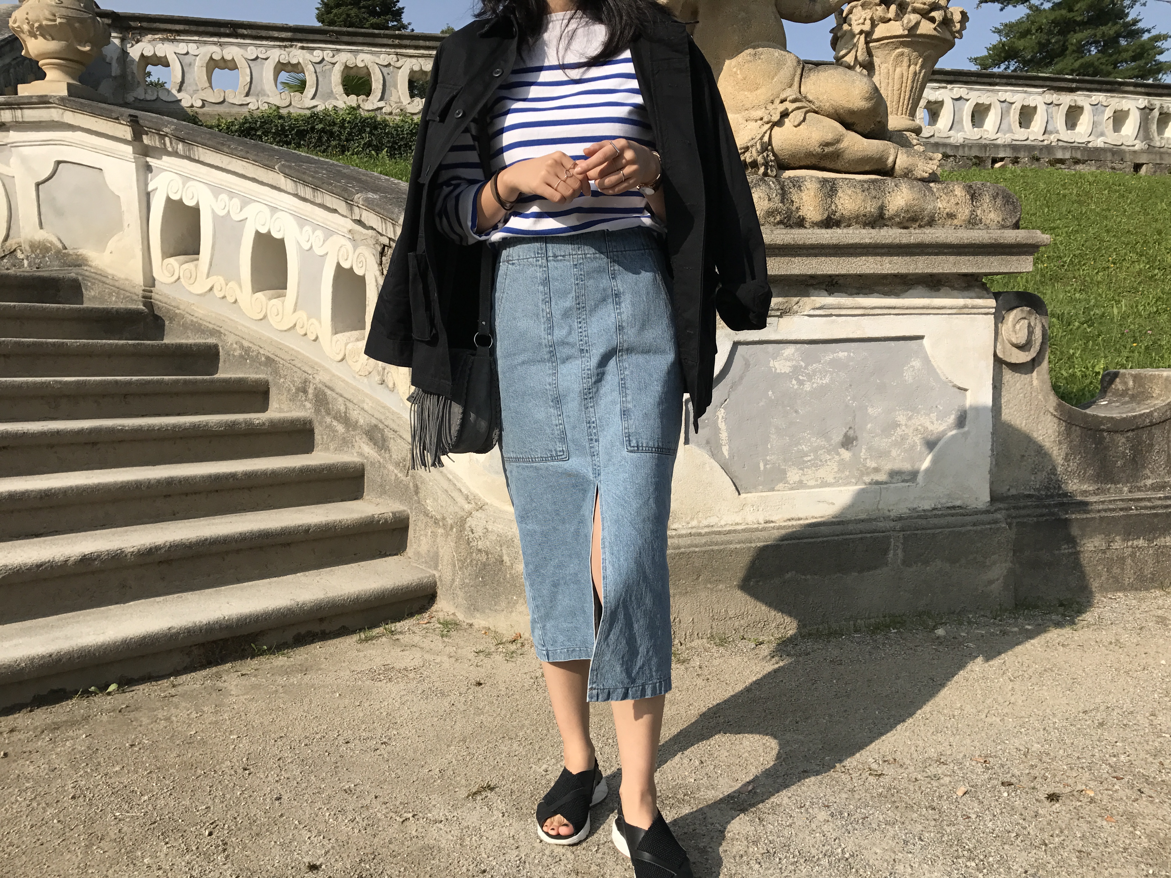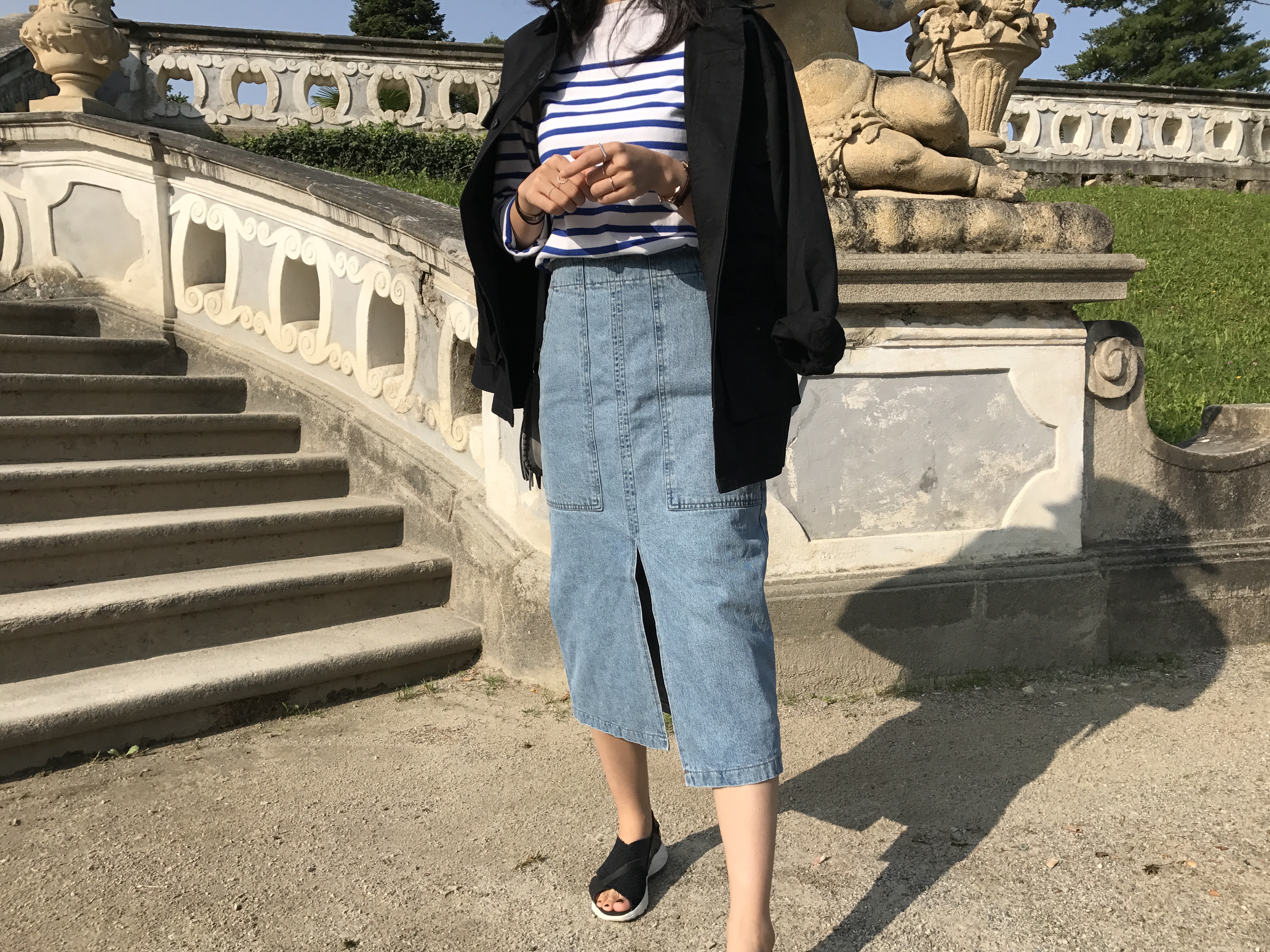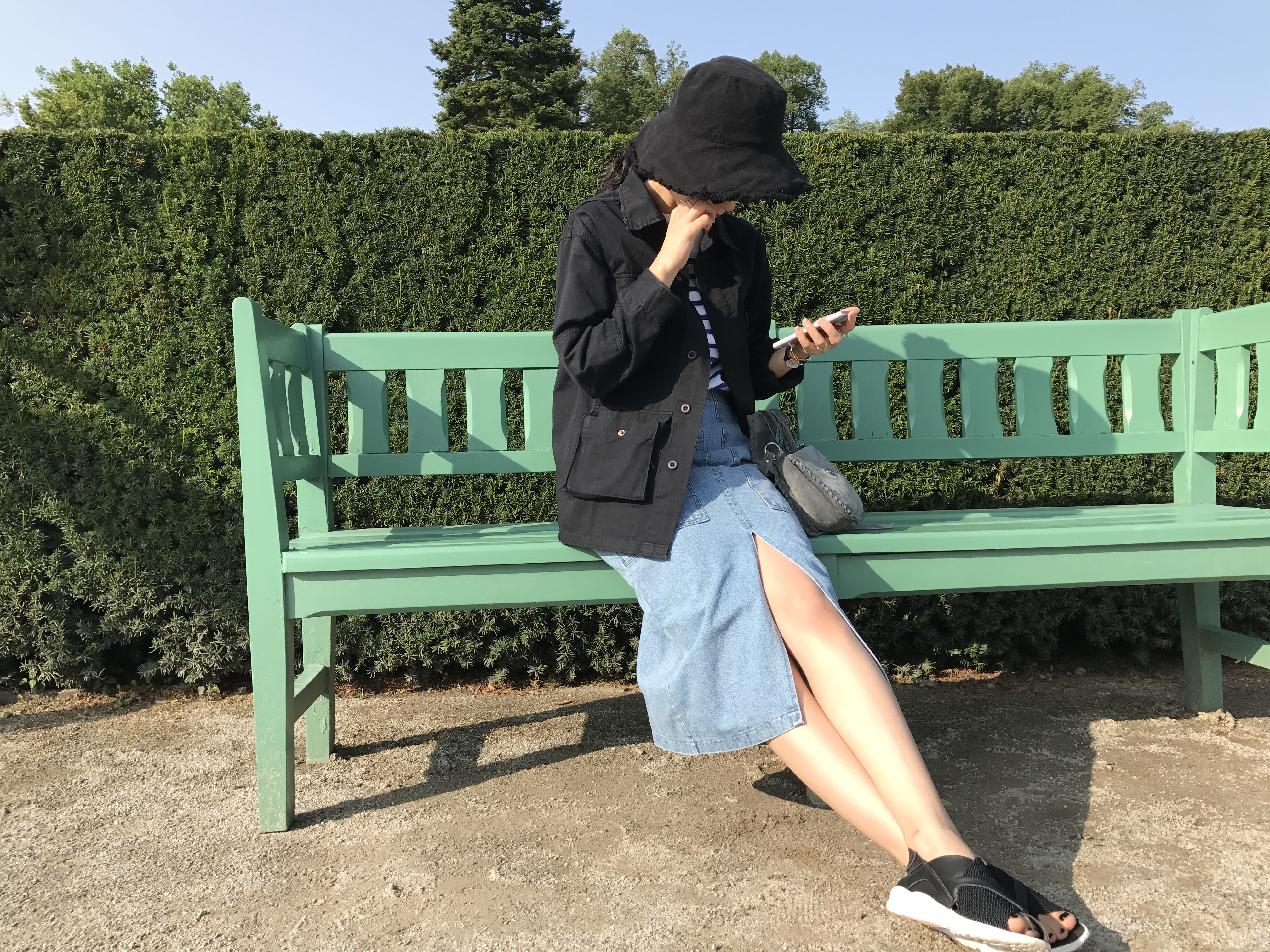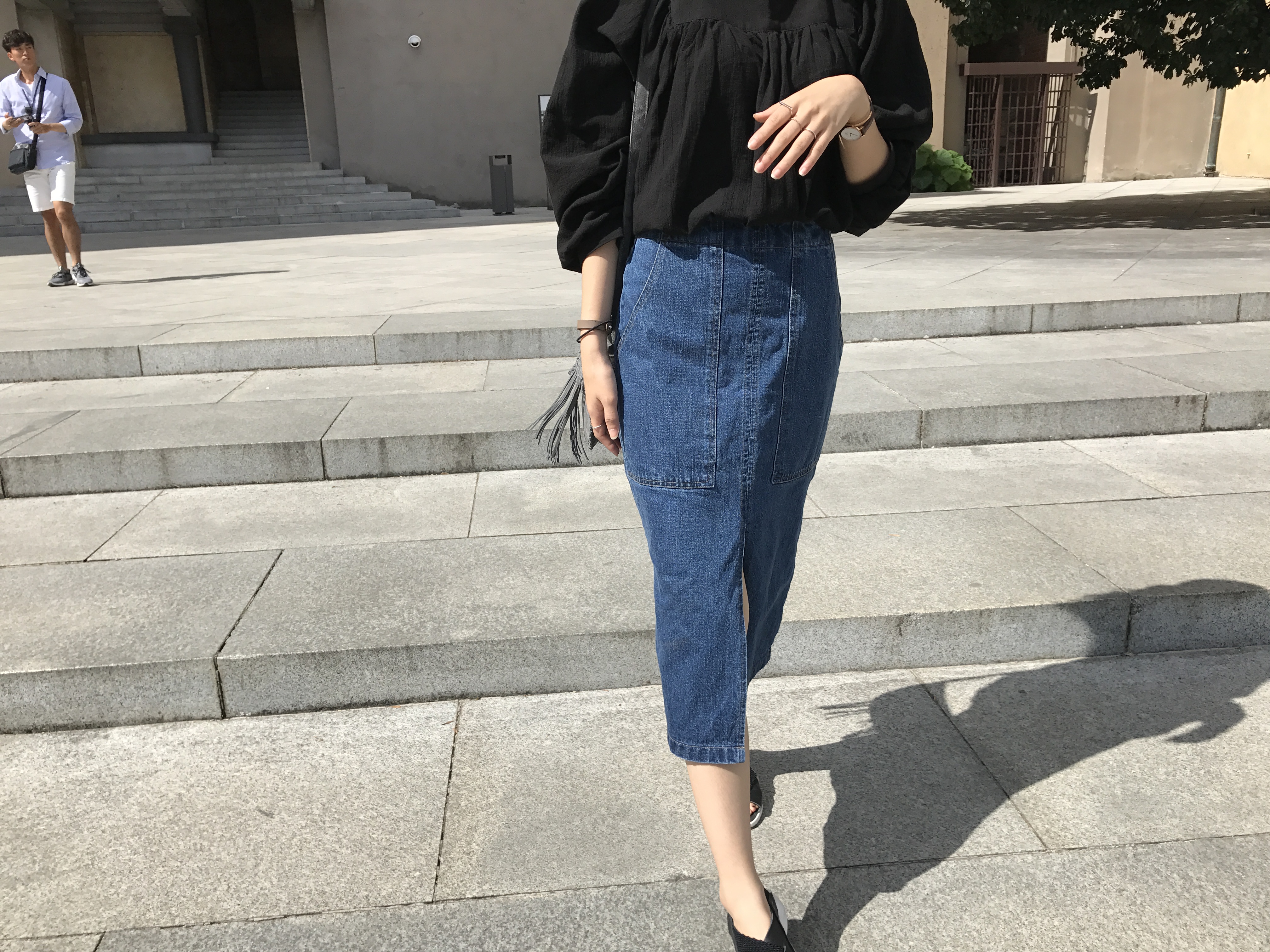 Long sleeved denim skirts and curly bands denim A line autumn