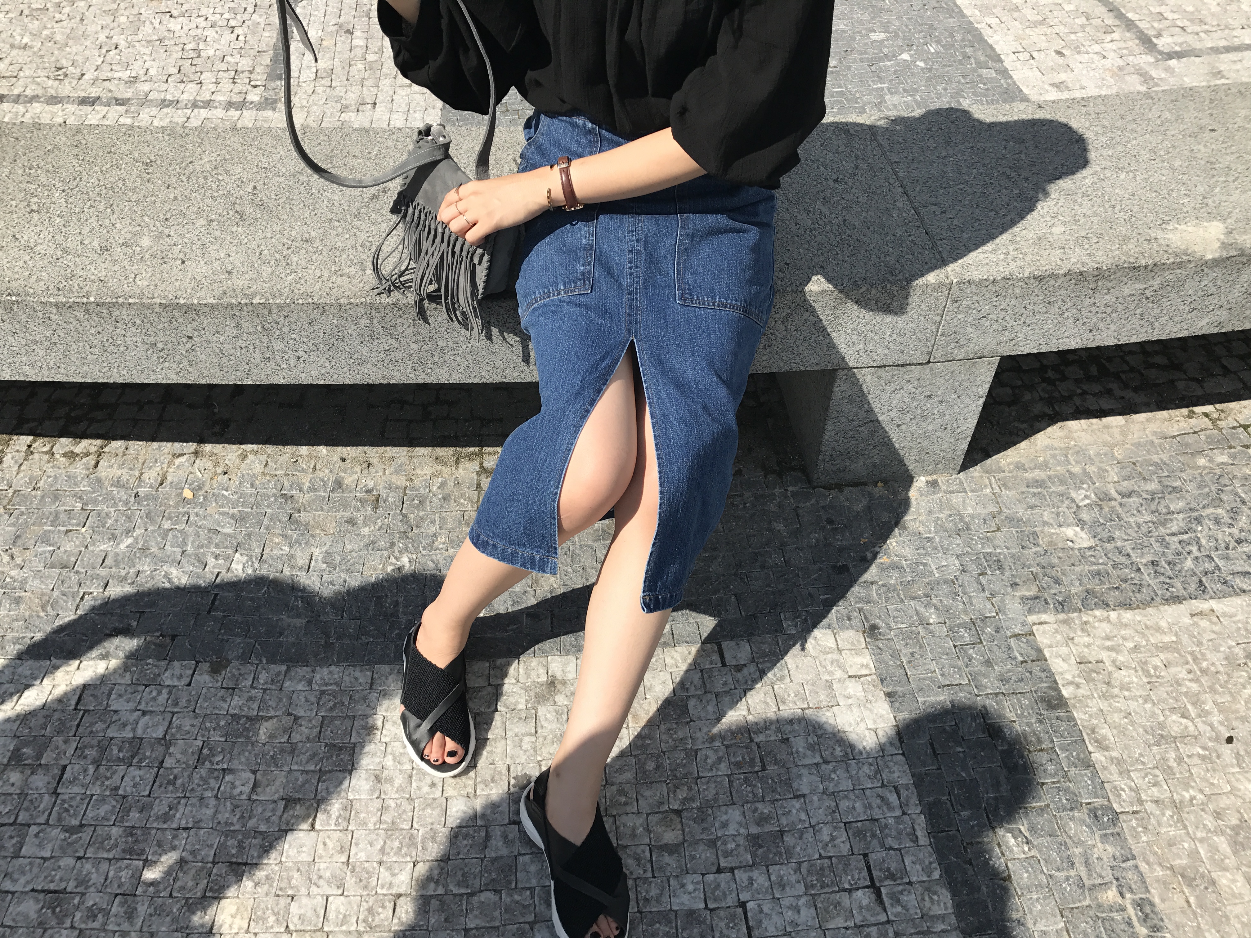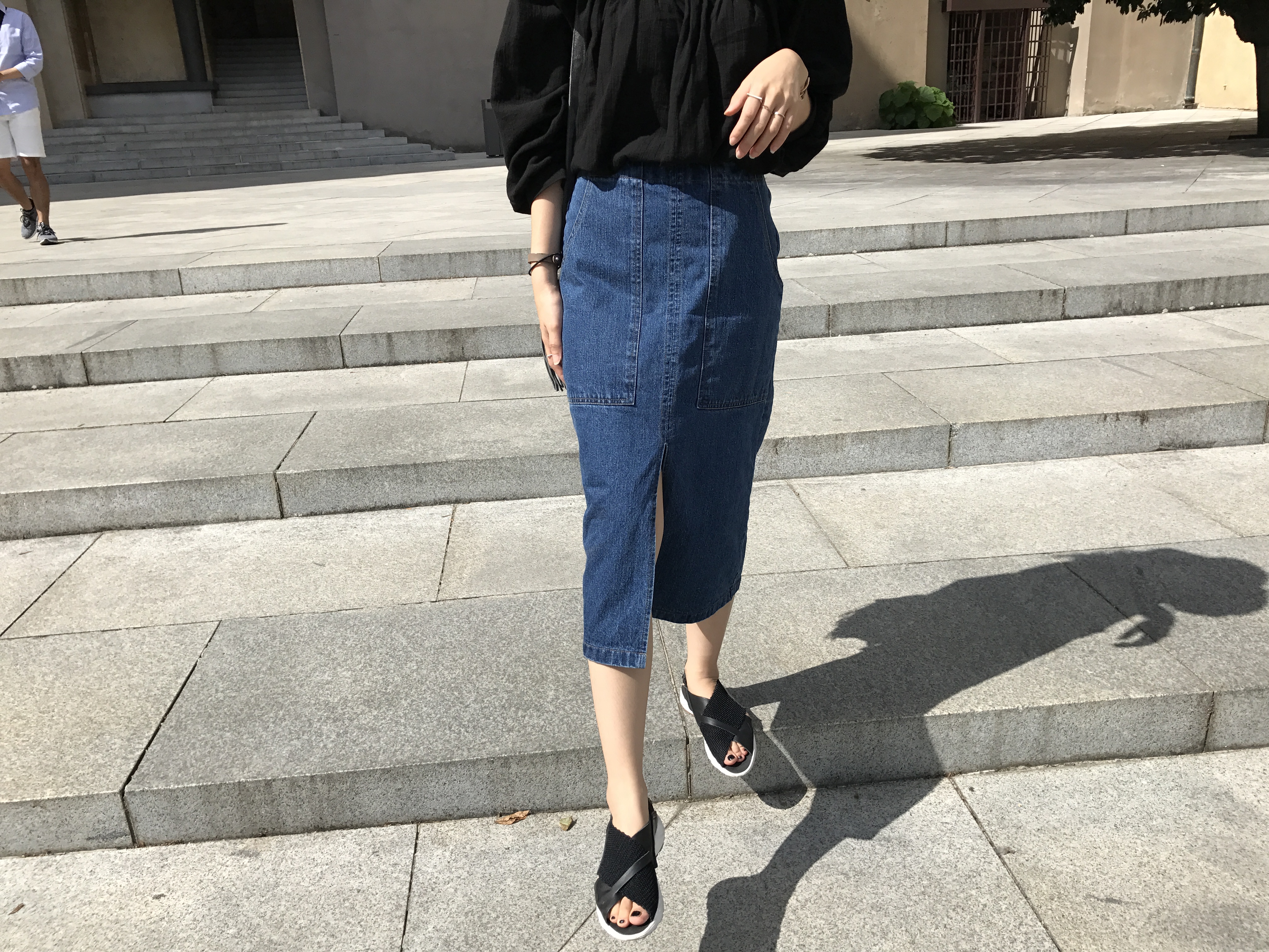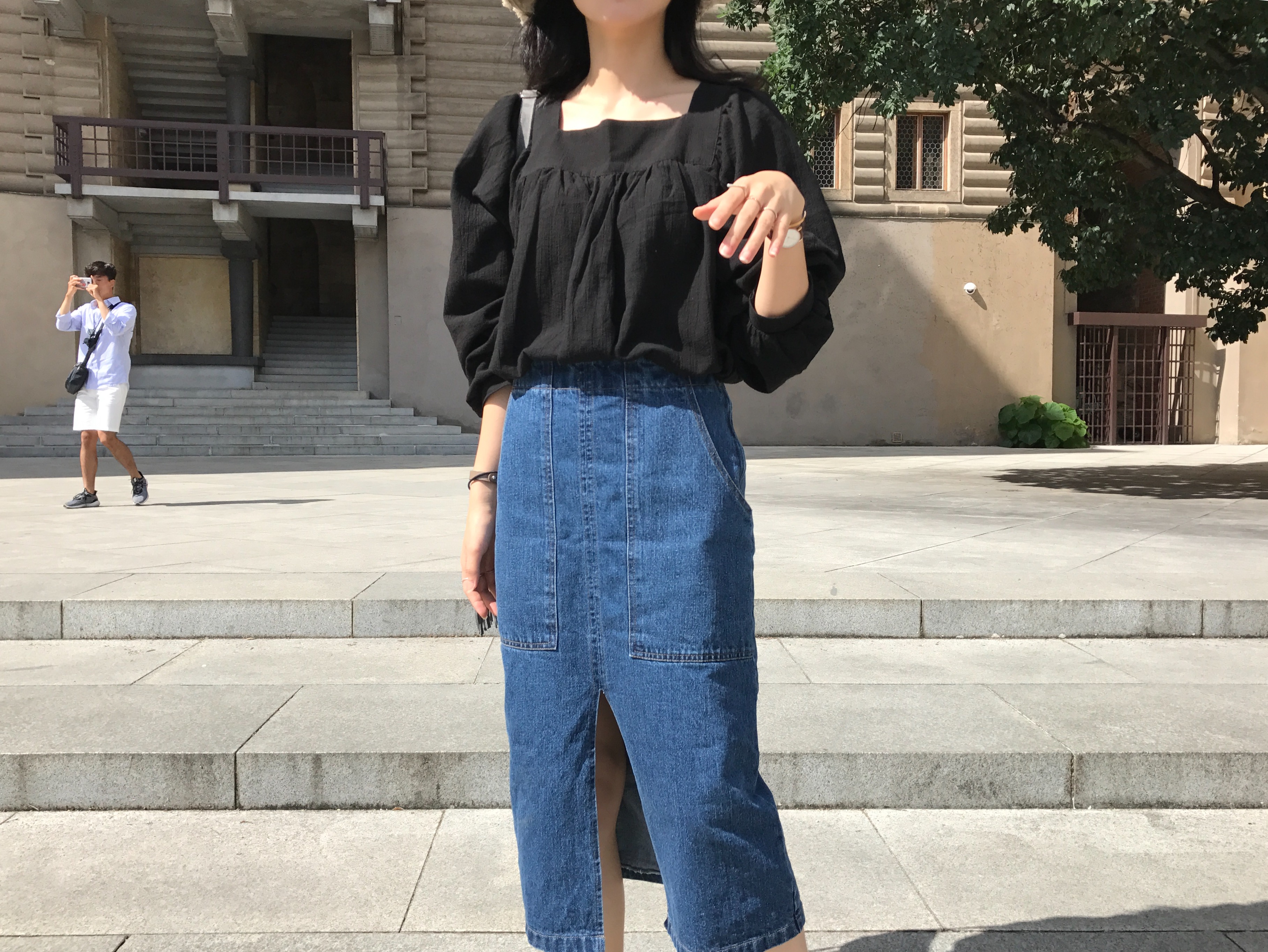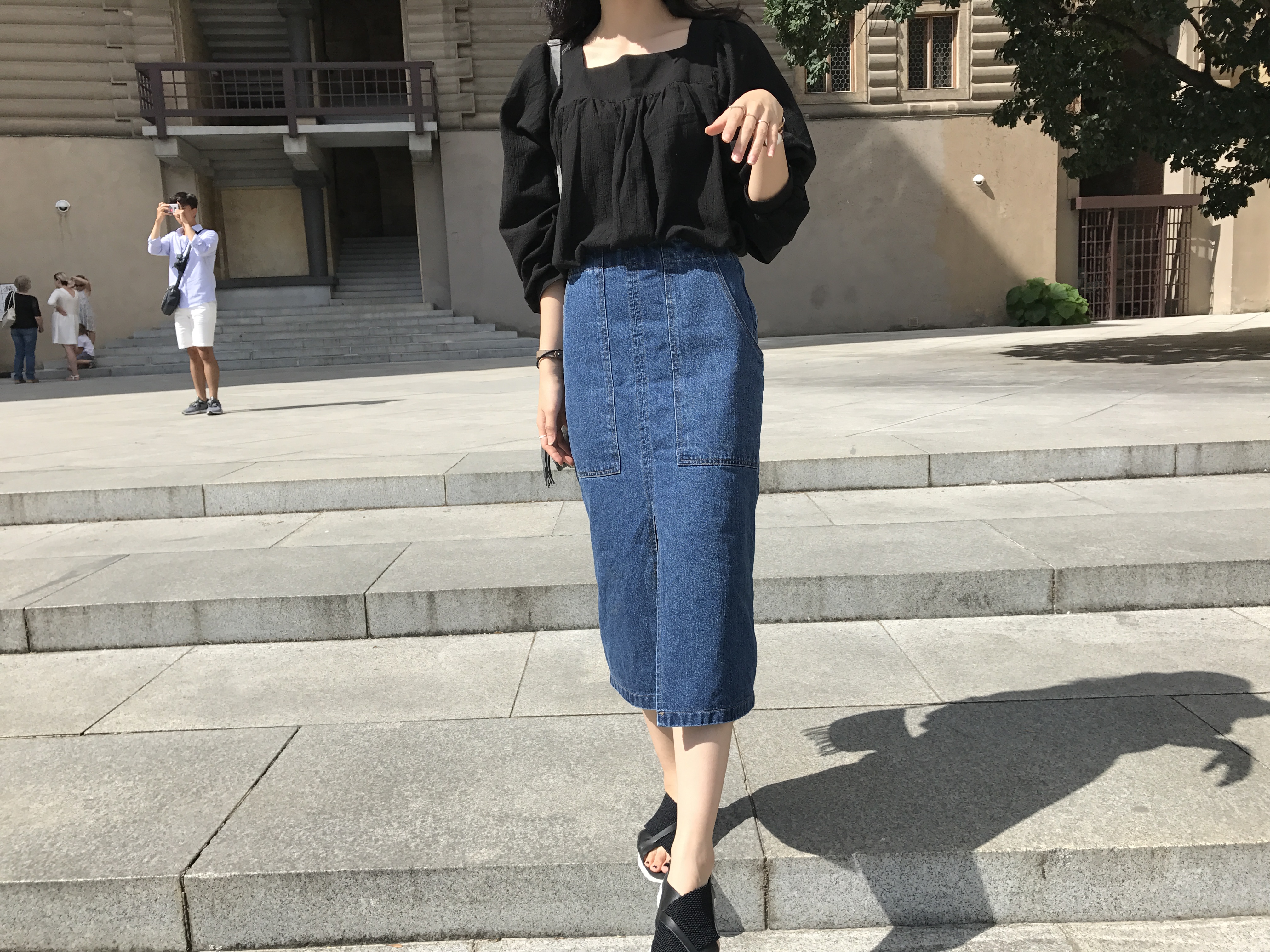 Long sleeved denim skirts and curly bands denim A line autumn