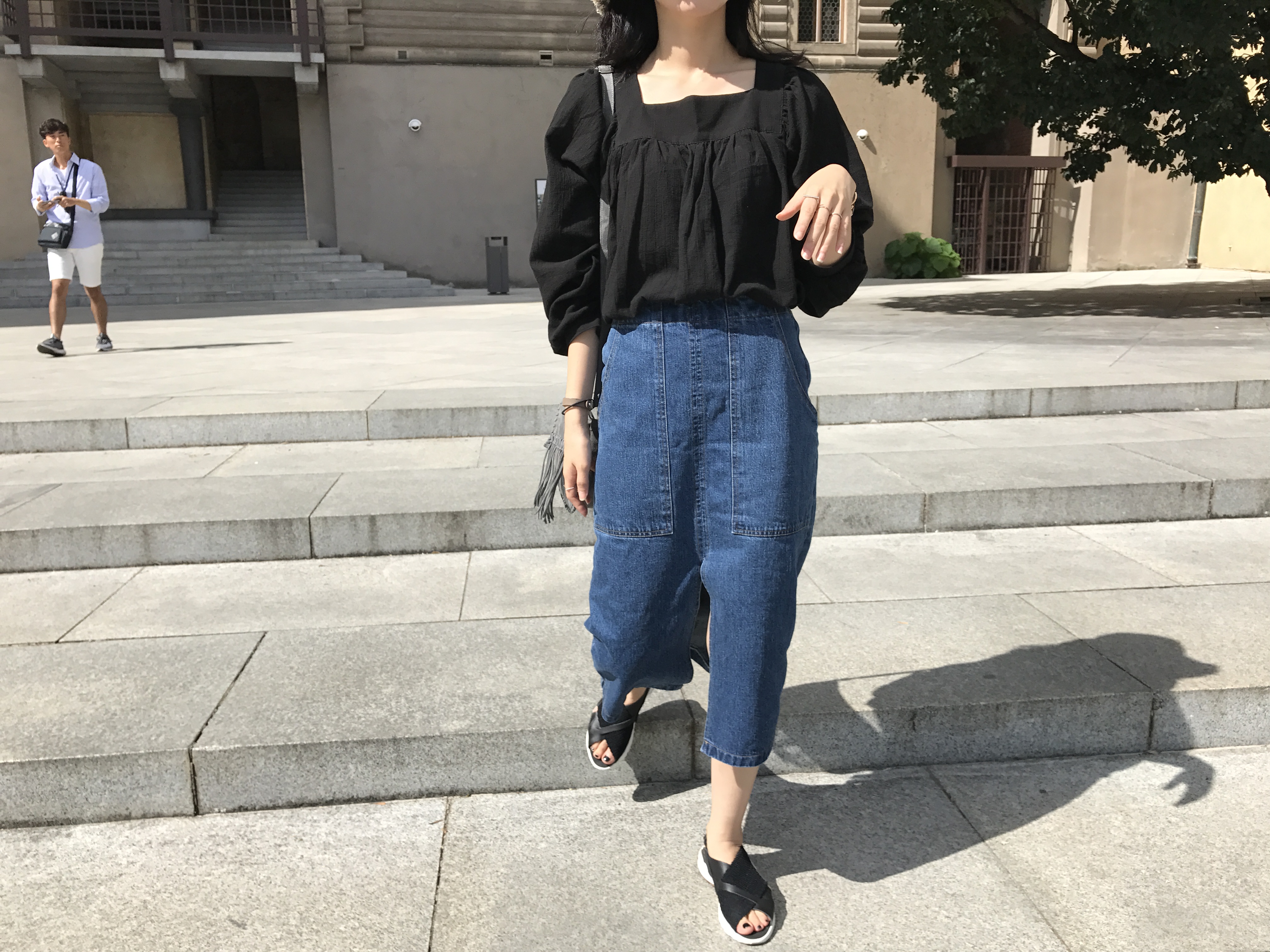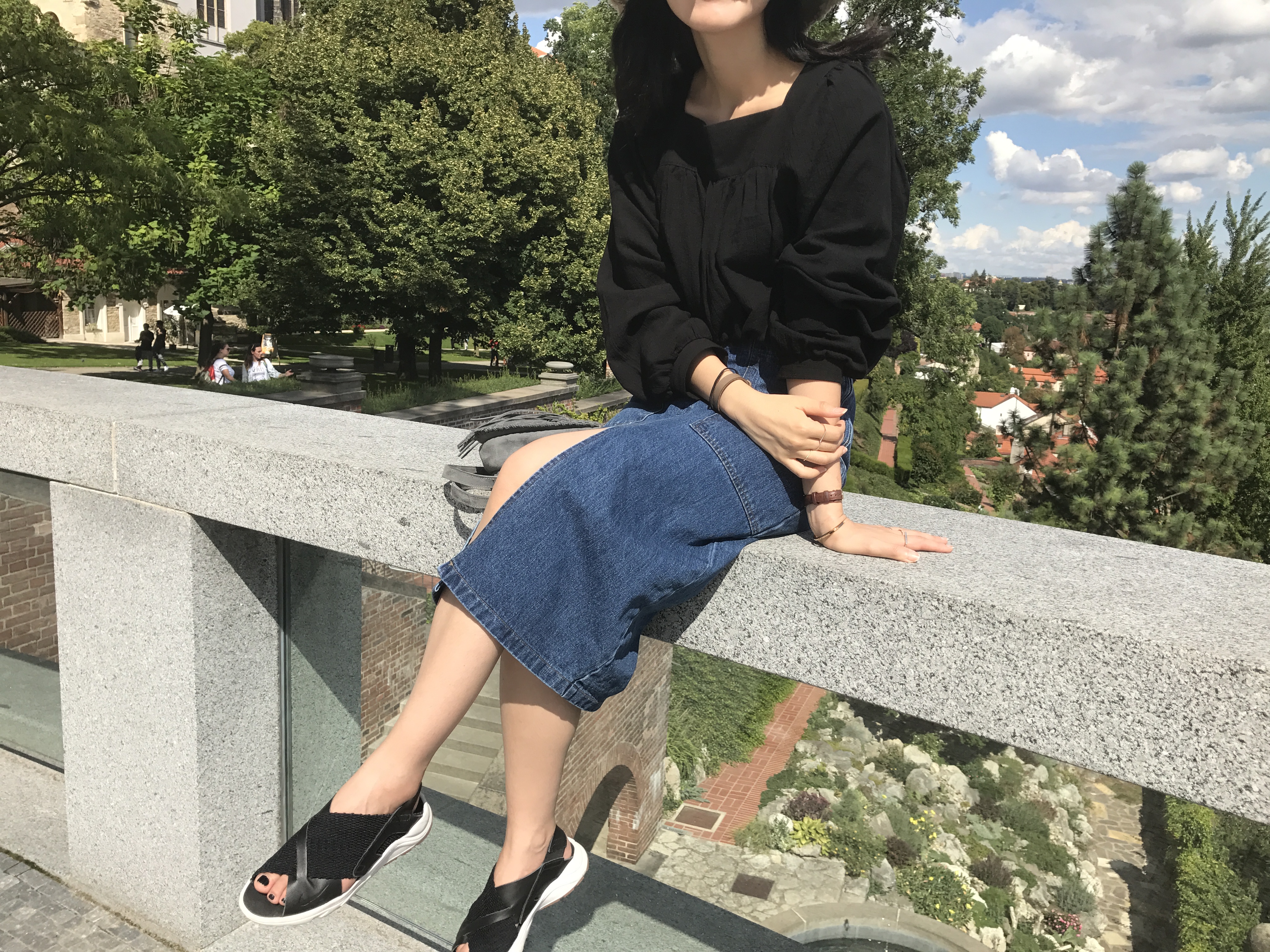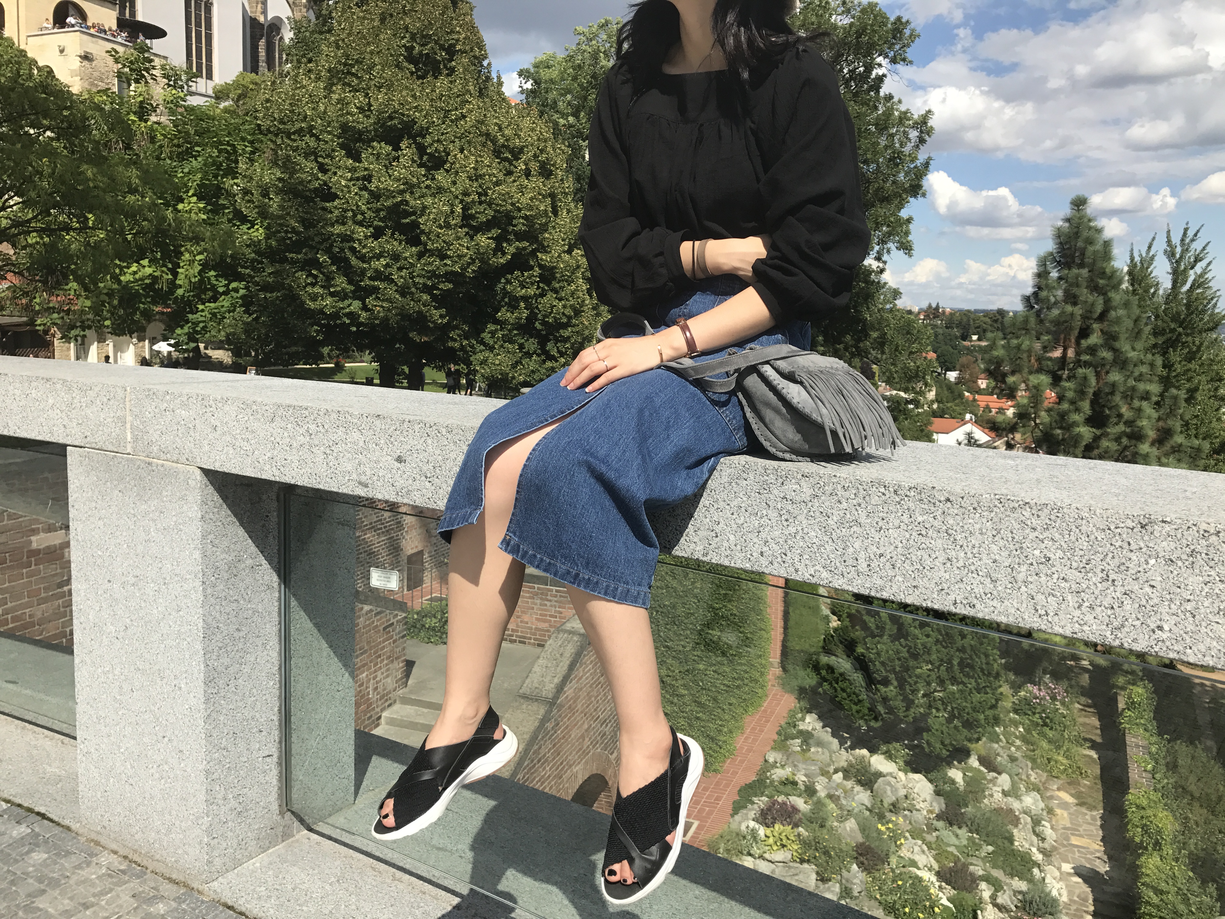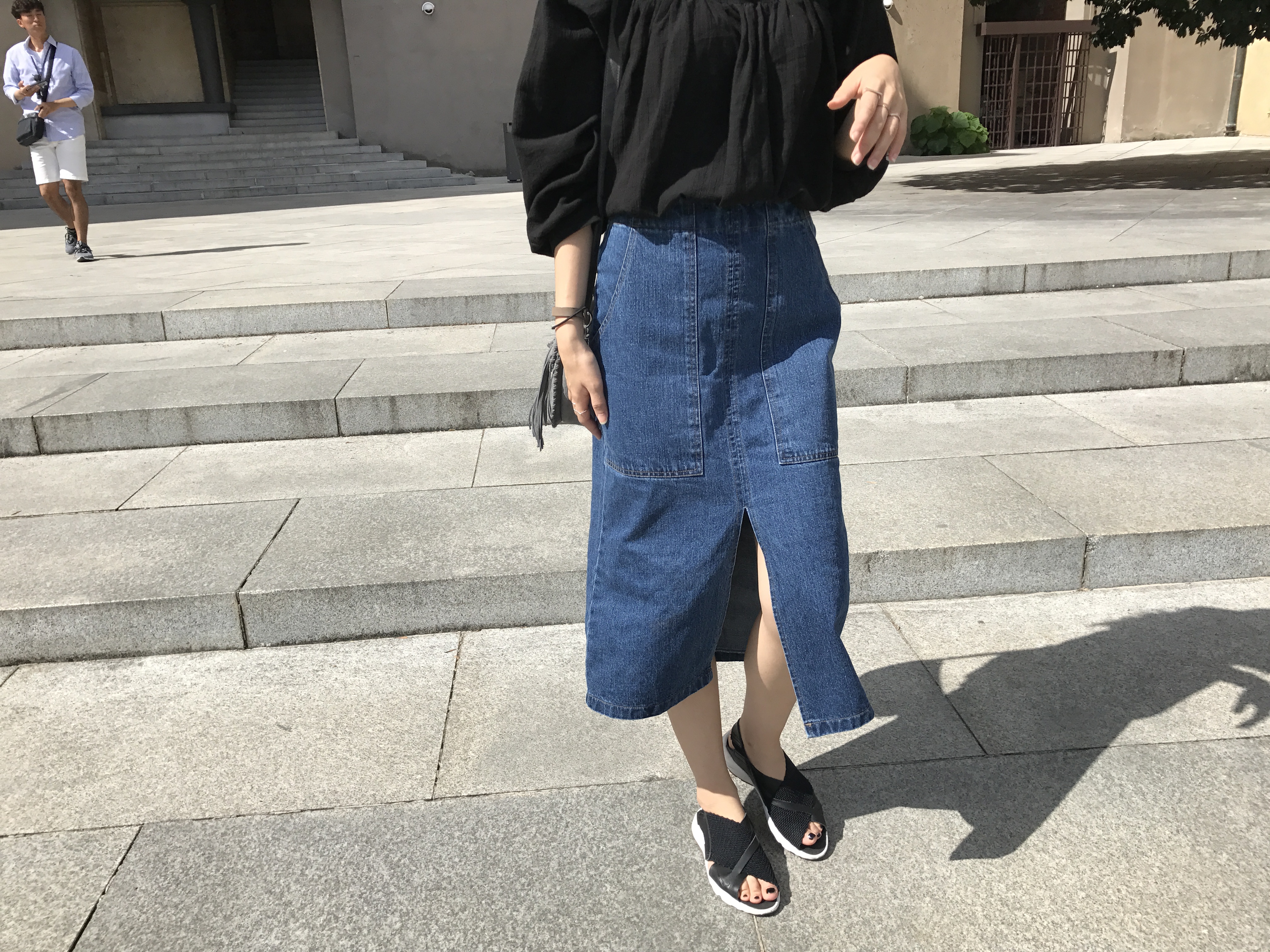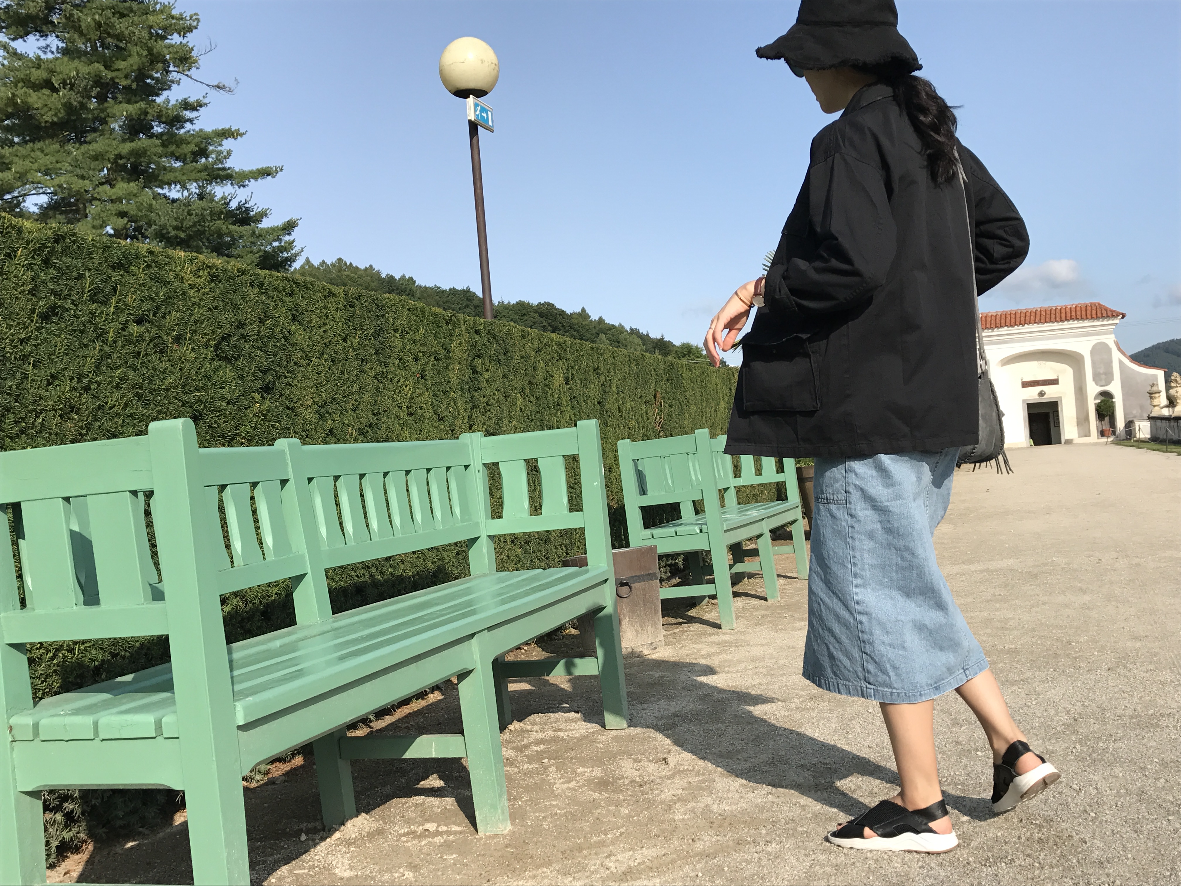 Long sleeved denim skirts and curly bands denim A line autumn