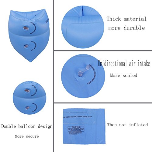 Attention 1:Due to characteristics of product itself,Occasionally a few have leakage,If you find this after purchase,Please inform to us, we will do our best to resolved this issue to make you satisfied. 2:Children must be under the guardianship of adults when using it. 3:Temperature is low in winter,PVC material easy become hard and crisp,Please put it in warm water about 15 minites before gasing air.Otherwise it is easy to cracking Package Includes: 1 x Swimming Float Armband 0