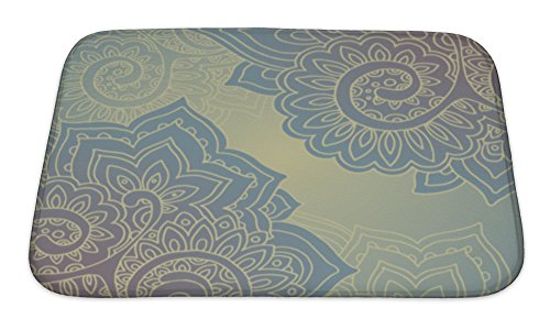 Gear New No Slip Microfiber Memory Foam Frame Pattern of The Indian Floral Ornament Bath Rug Mat, 24" X 17"