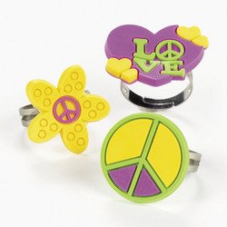 Product Description12 ~ Peace Love Rings ~ Metal ring with 1" rubber charm ~ adjustable ~ assorted designs ~ New in sealed package.0