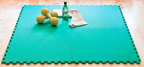 4 piece 2ft x 2ft GREEN interlocking exercise mats that create 16 square feet. Set up in seconds with easy do-it-yourself interlocking mats.