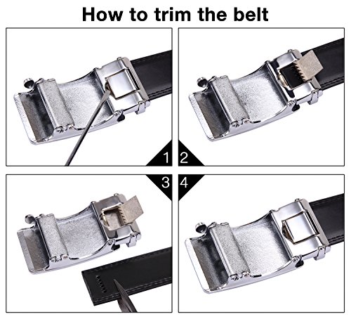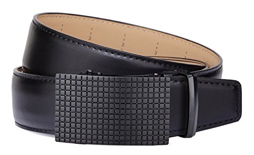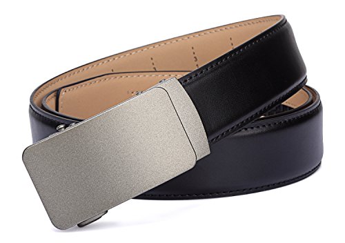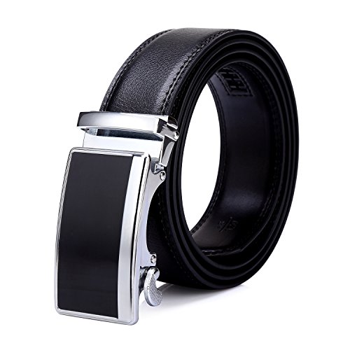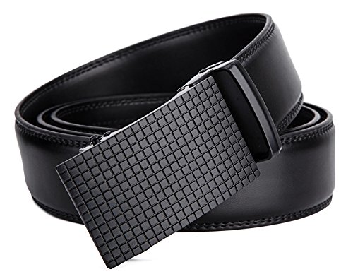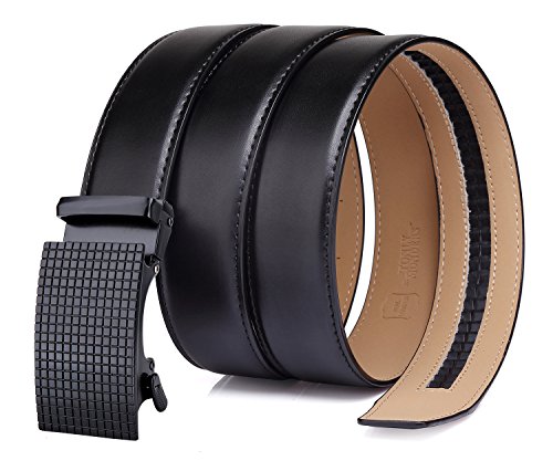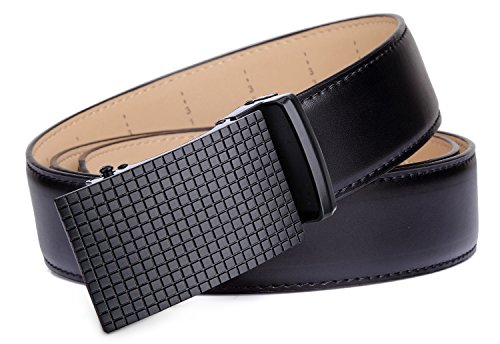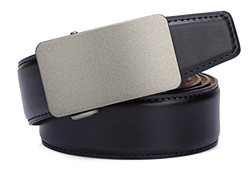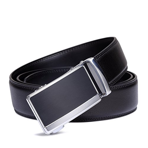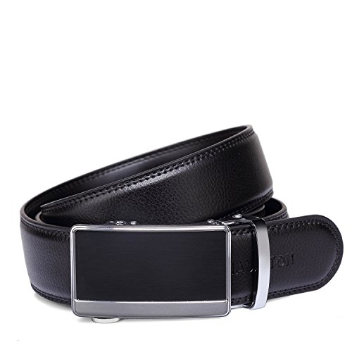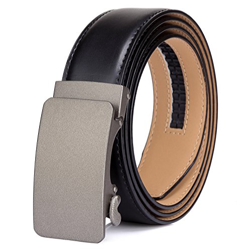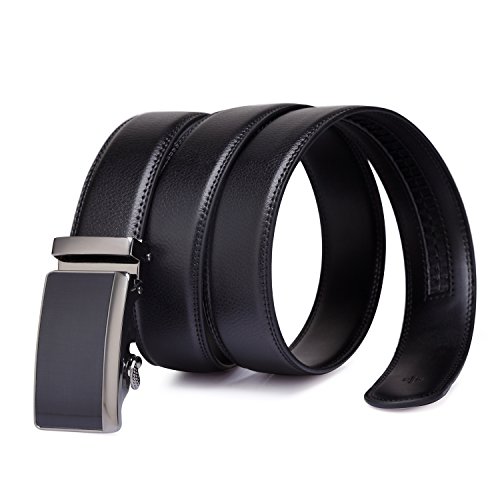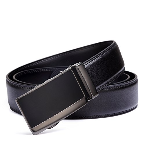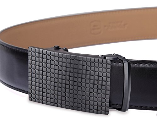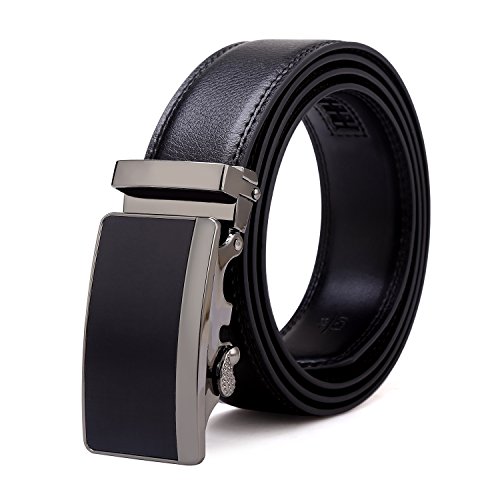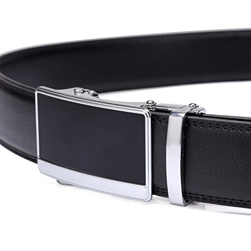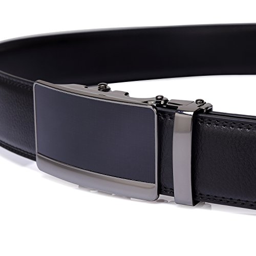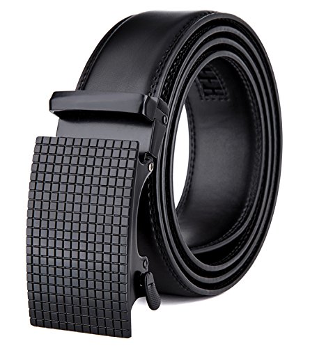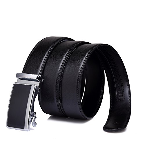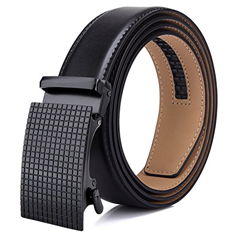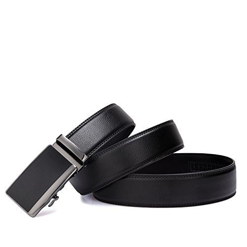 Tonly Monders Men's Dress Leather Belt Automatic Ratchet Buckle, Black, 35mm Wide 110cm 28 30 32 34 36 Inch Waist