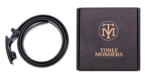 Tonly Monders Men's Dress Leather Belt Automatic Ratchet Buckle, Black, 35mm Wide 120cm 38 39 40 41 Inch Waist