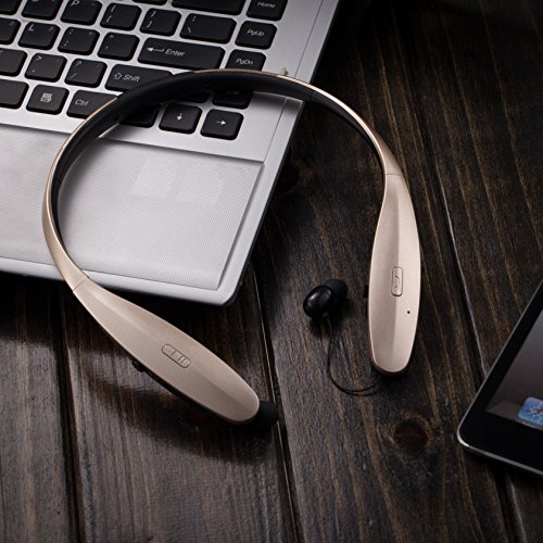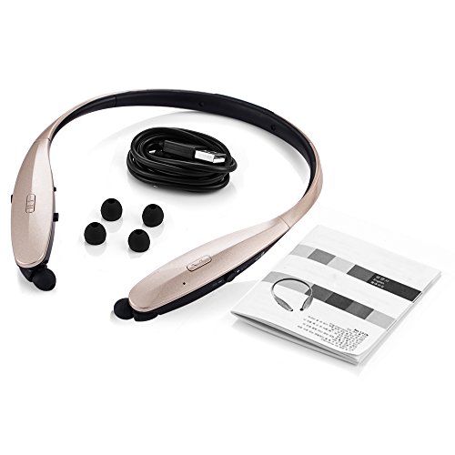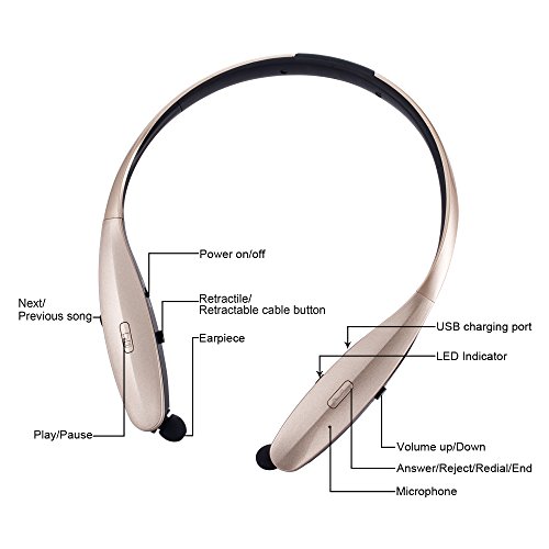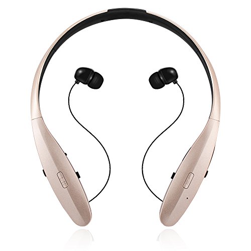 Retractable Earbuds Bluetooth Headphone, Wireless Sport In-ear Headset, Stereo Music Earphone,Support Handsfree Calling (Gold)