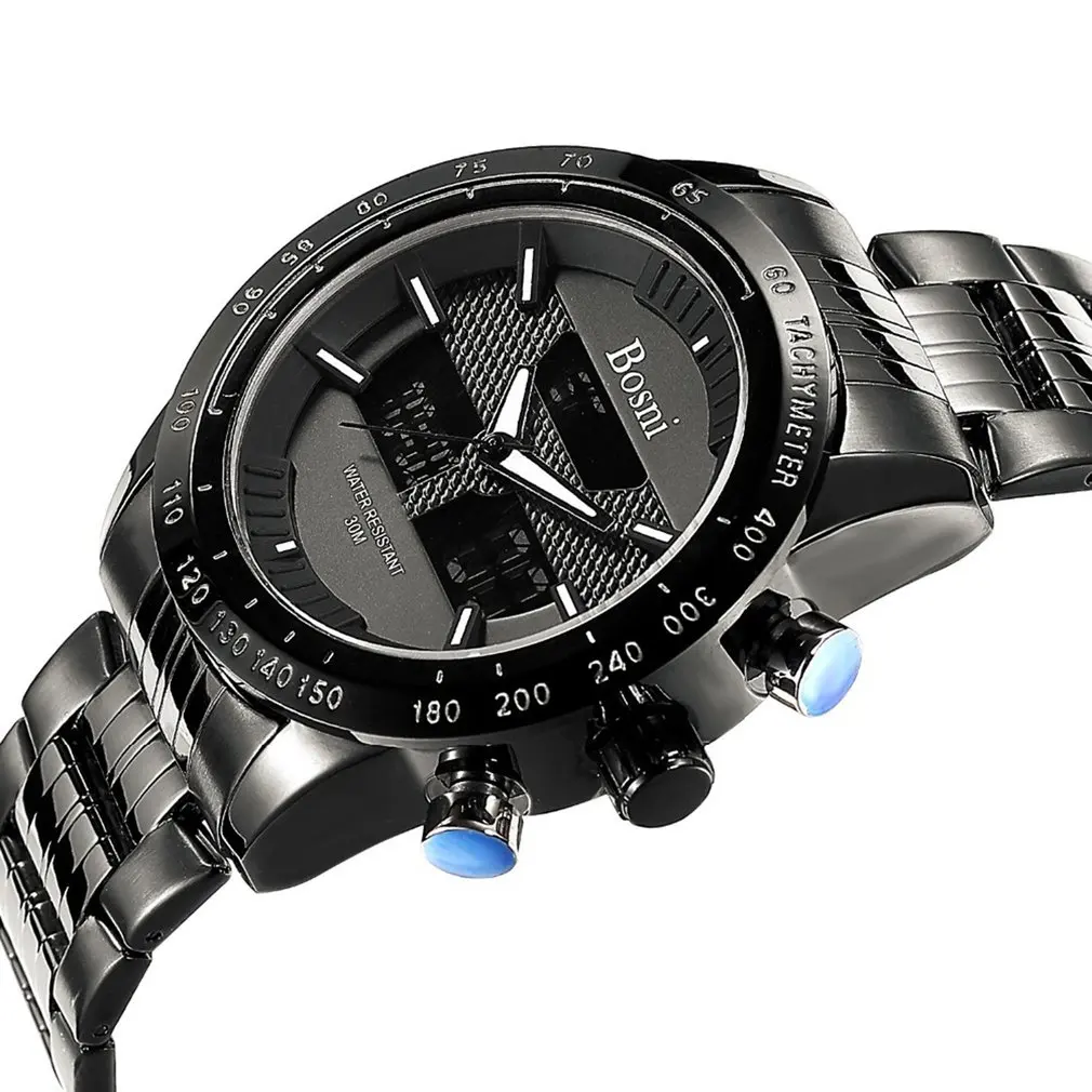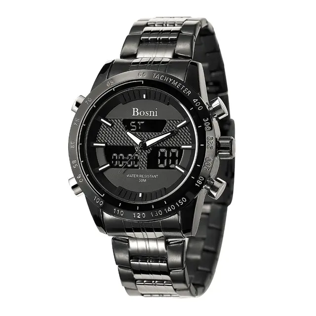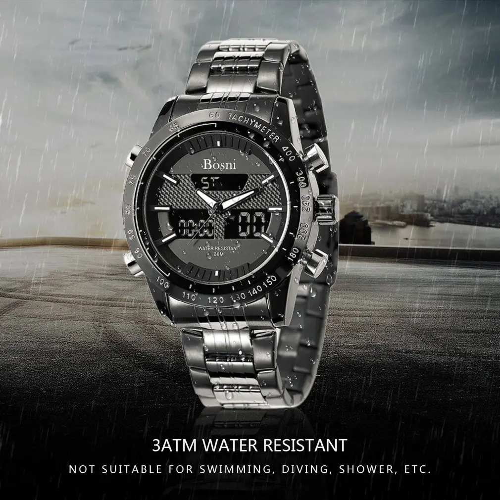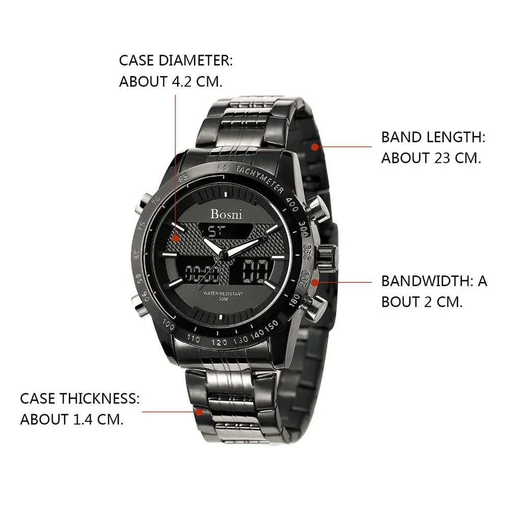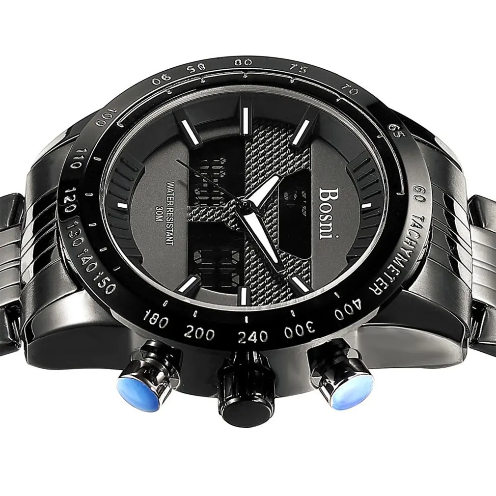 | [해외] BOSNI Hardlex 유리 듀얼 디스플레이 손목 30 메터 방수 남성 손목 시계 패션 스포츠 석영 운동 시계 |