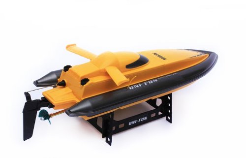- Feature : Features: Electric Powered (Rechargeable) Full Function! (Go Forward and Backward, Turn Left and Right) / Perfect for Pools, Lakes, Ponds, etc! Vector-Push Technology, Easy to Control Aerodynamic Body Design Equipped with a High Performance 380 Motor Capable of 20km/h Speeds! / Powerful Single Propeller Propulsion System High Gloss Paint Job Pistol Grip Remote Comes with a Display Stand / Power by 7.4v 1300mAh Li-ion battery (Included); Remote Control requires 4 AA Batteries (Not Included) / Dimension: L18.5" W5.5" H4"