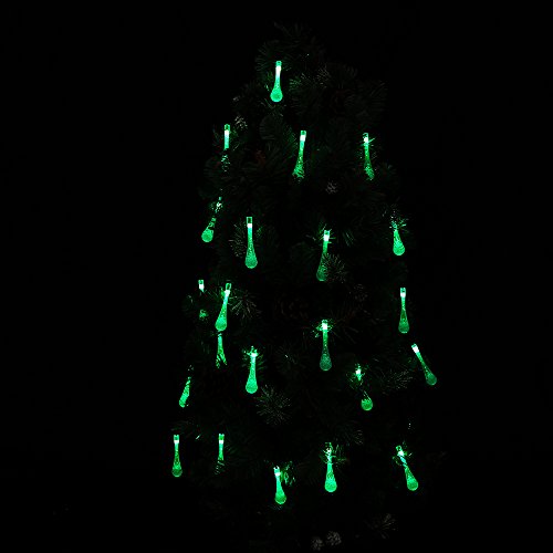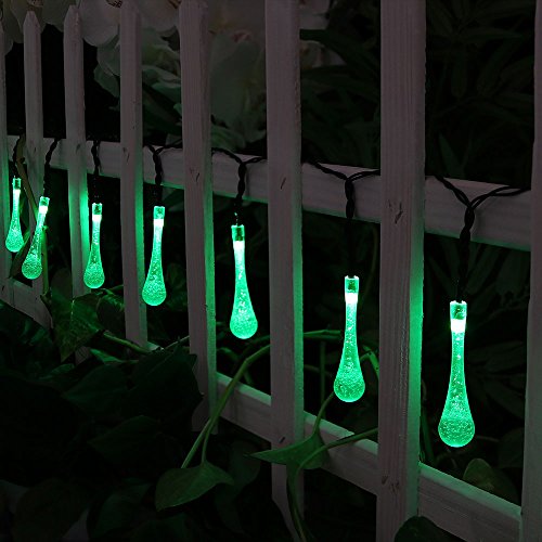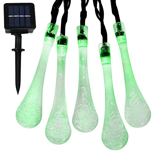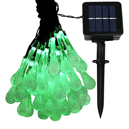 Sunnydaze 30-Count Green Water Drop LED Solar Powered String Lights, Includes One 20-Foot Strand