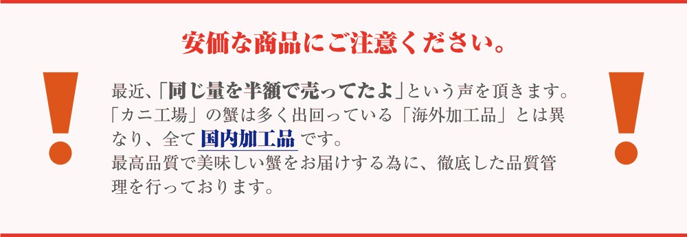 「殻を剥くのが面倒」というご意見を頂き、かに工場のハーフポーションが実現しました。