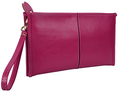 BIG SALE BY APRIL 15! Our company Yaluxe is now updating our brand and package from "Yahoho" to "Yaluxe" for better brand recognization,hence you may receive products tagged with either of them.A clutch size wallet made from soft Genuine Leather with coating finish ( outside ) and PU leather ( inside ),shiny light gold-tone hardware and zippers.The wrist strap makes the clutch wallet easy to carry.