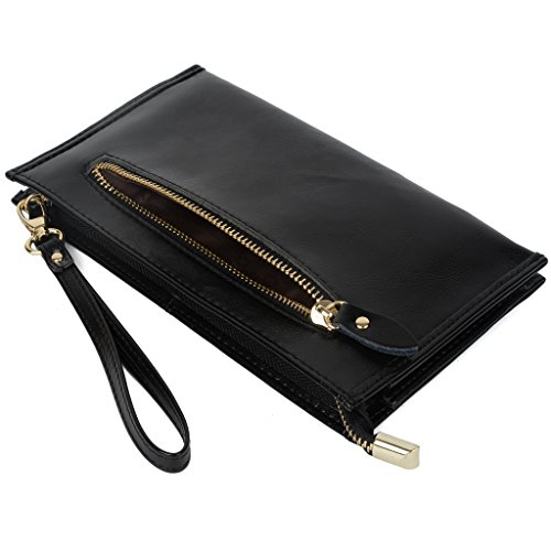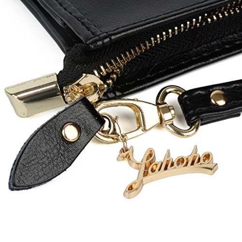 Big Sale-Yahoho Women's Large Capacity Leather Wristlet Clutch with Shoulder Chain Fit Samsung Note 4 / IPhone 6 Plus Black