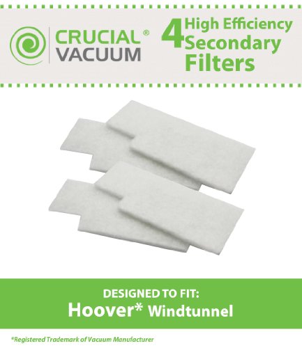 4 Secondary Filters for Hoover Tempo, WidePath, Fold Away, and WindTunnel Vacuums; Compare to Hoover Part No. 38765019, 38765023; Designed & Engineered by Think Crucial