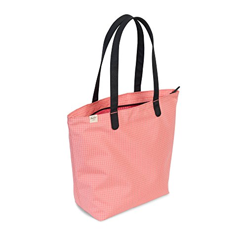 The contemporary mica tote features a zippered compartment with extended handles that allow it to be comfortably worn on the shoulder.