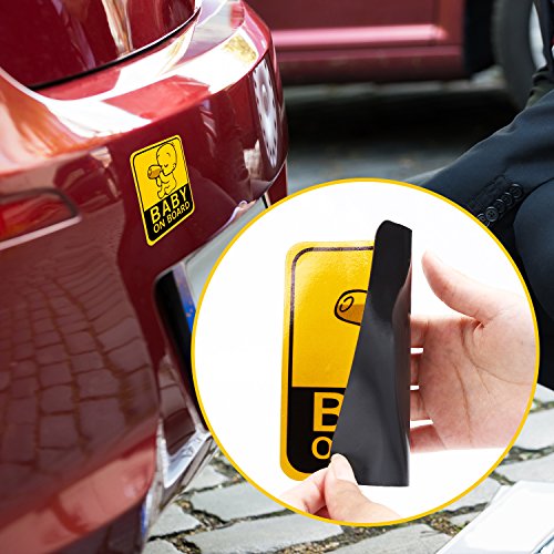 Mtlee 3 pieces baby on board car sticker magnetic reflective safety caution sign for baby car safety, 12.5 by 12.5 cm Reflective safety caution: The sign is able to reflect the light at night, very obvious, attracting others attention quickly, thus can protect you when you are driving in the evening. Magnetic sign: The sticker is magnetic, easy to use, it also allow you to remove conveniently without any residue, and they are reusable, you can use them for more than once. Specifications: Side length: 12.5 cm/ 4.9 inches Thickness: 0.5 mm Material: polyester Color: yellow and black Quantity: 3 pieces Package includes: 3 x Baby on board sticker 0