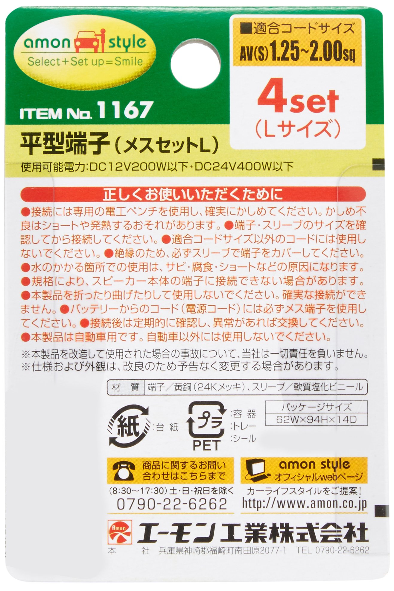 Amon 1167 flat type terminal (female set ・ L)