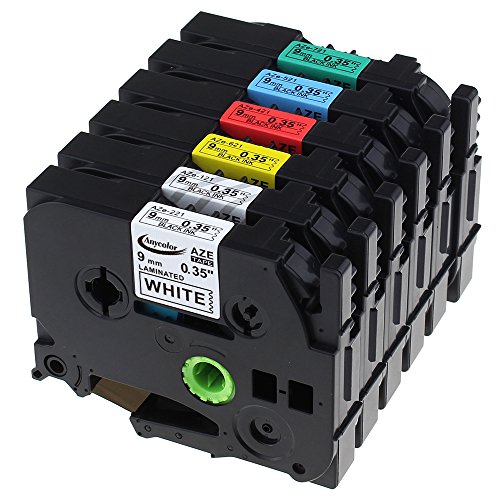 Size for each tape: 3/8" (9mm) Width x 26.2' (8m) Length. 6 Colors are available in one set. Color: Black on Clear (Compatible TZe-121), Black on White (Compatible Brother TZe-221), Black on Red (Compatible Brother TZe-421), Black on Blue (Compatible Brother TZe-521), Black on Yellow (Compatible Brother TZe-621), Black on Green (Compatible Brother TZe-721)