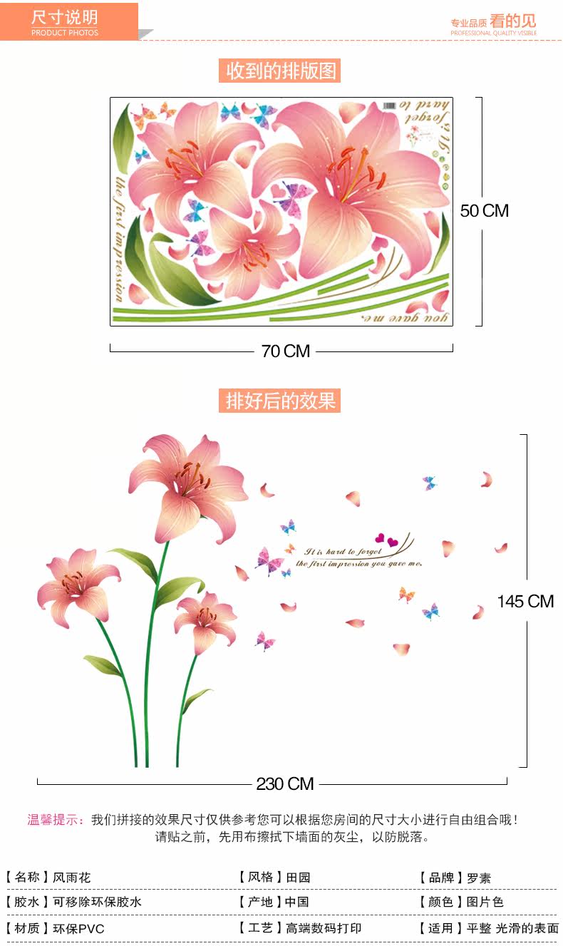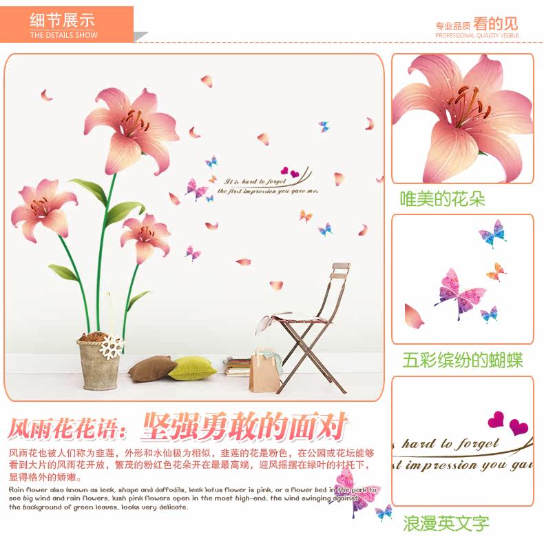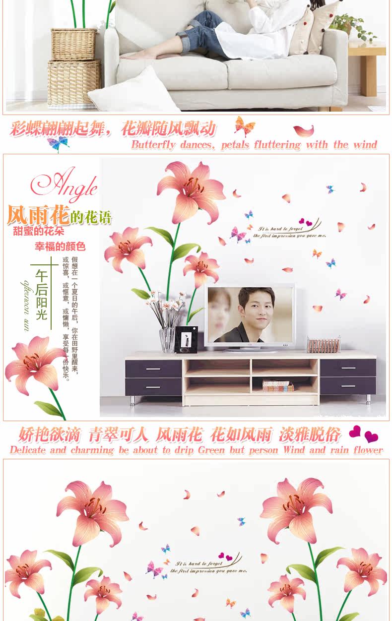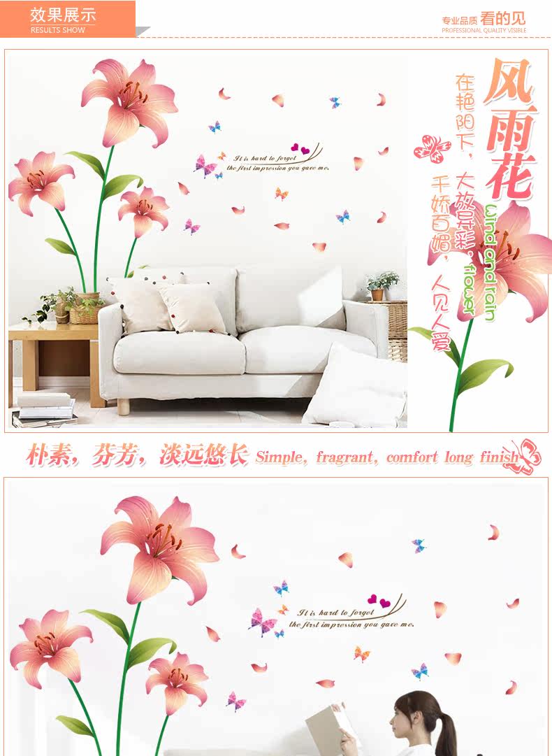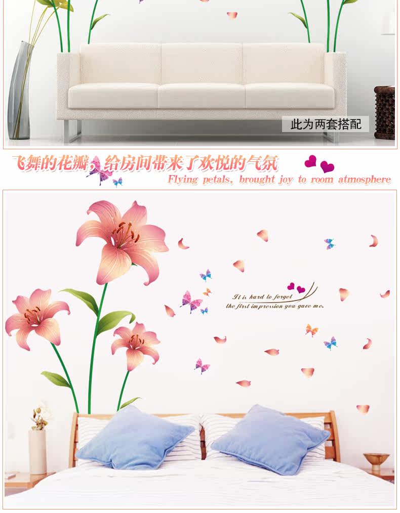 杜鹃花墙贴客厅沙发电视背景墙壁装饰温馨床头卧室可移除贴纸贴画